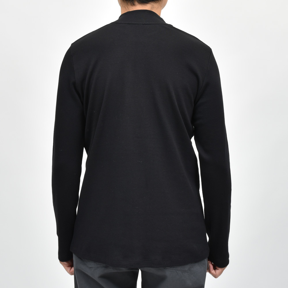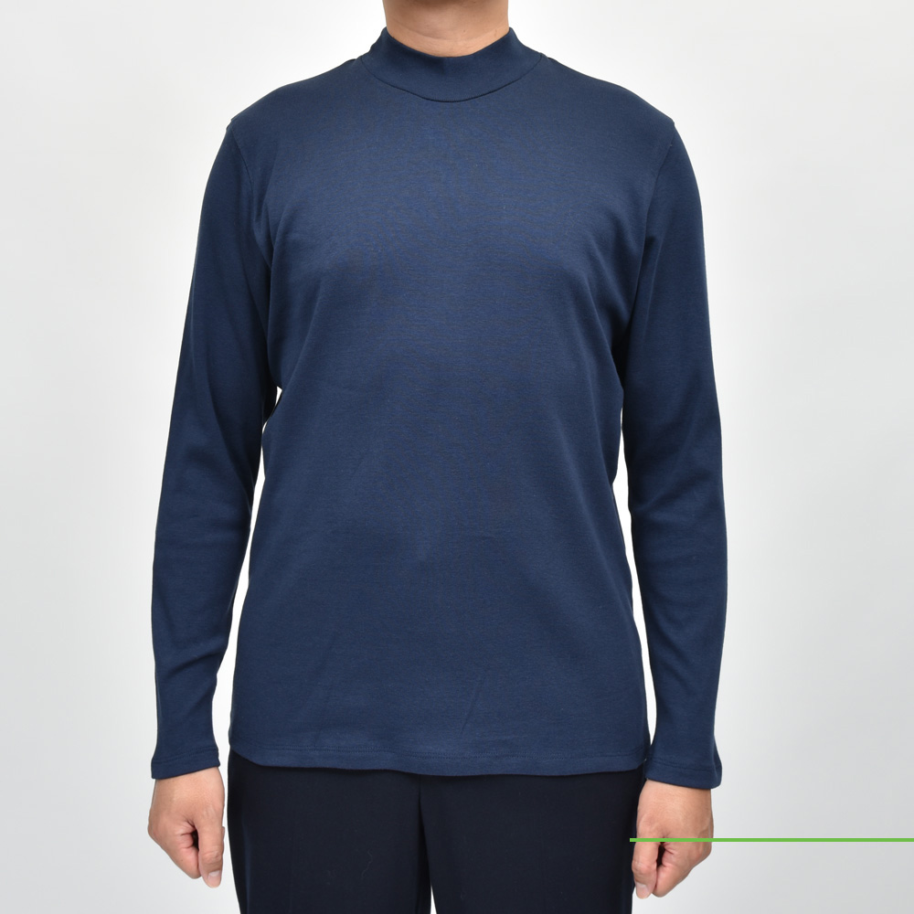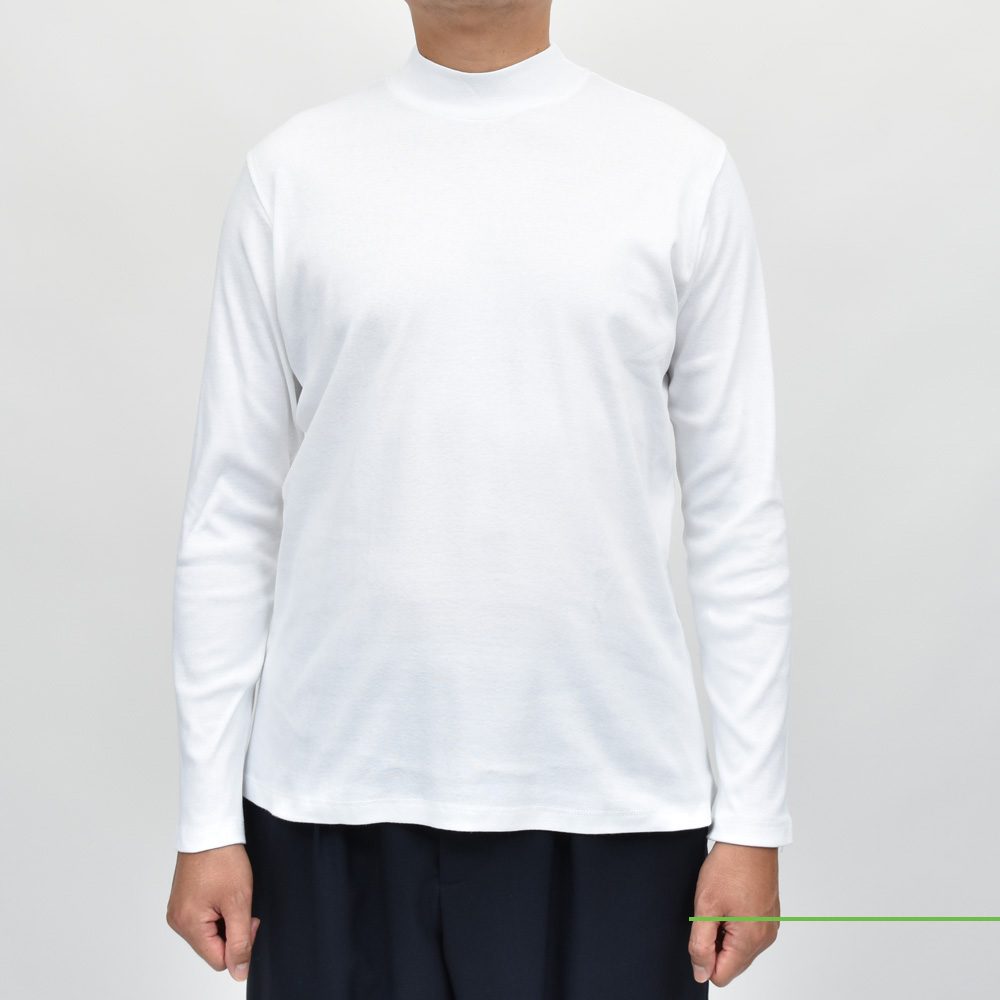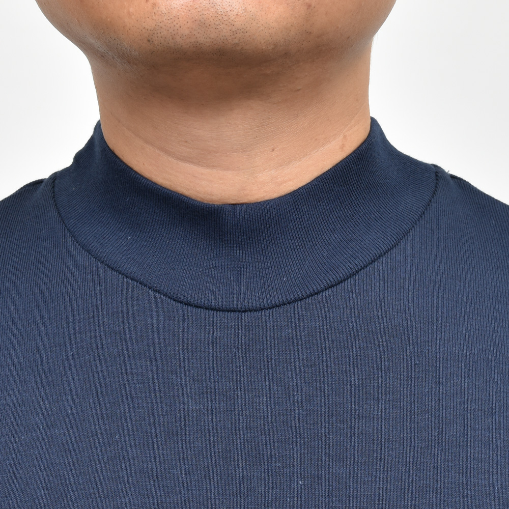 クルーネックの延長で着られるタイプです。モックネックと言っても微妙にネック高に違いがありまして、こちらは低目ですね。
