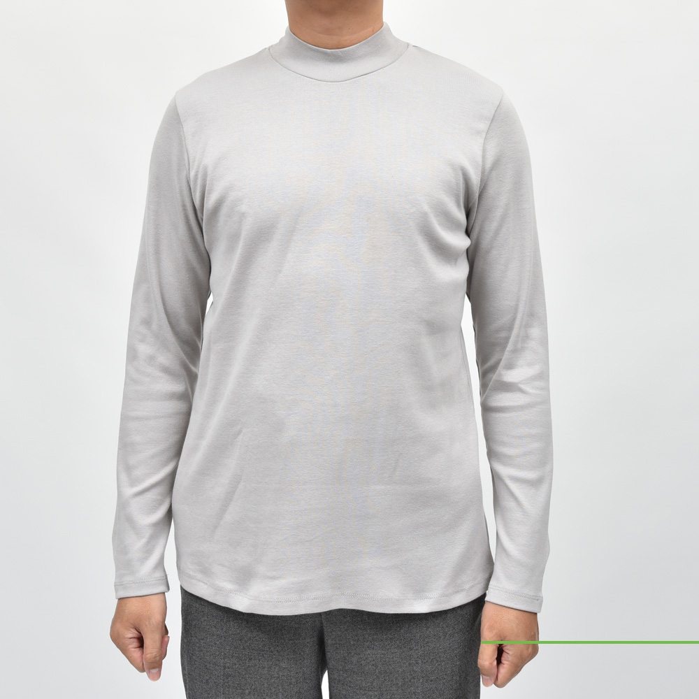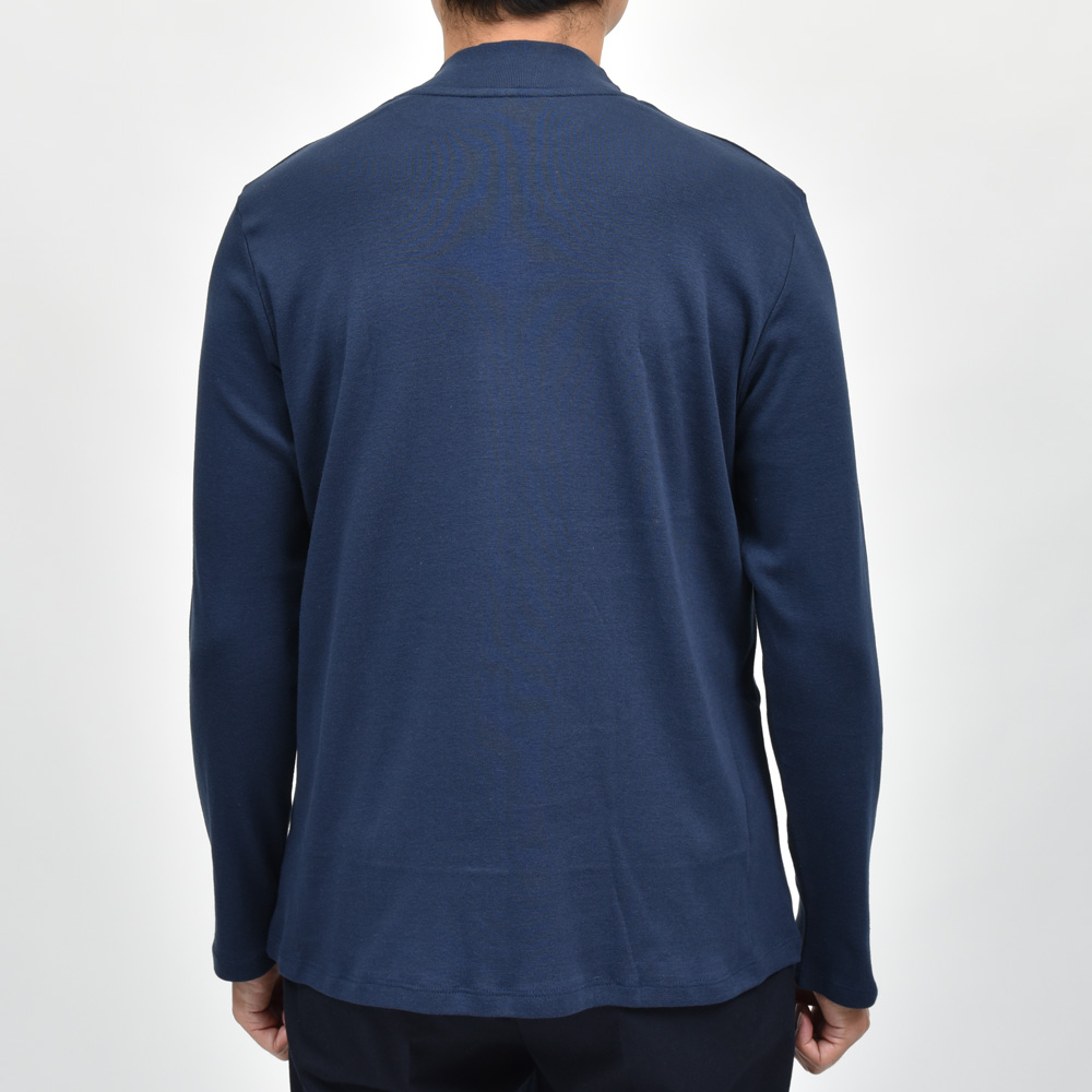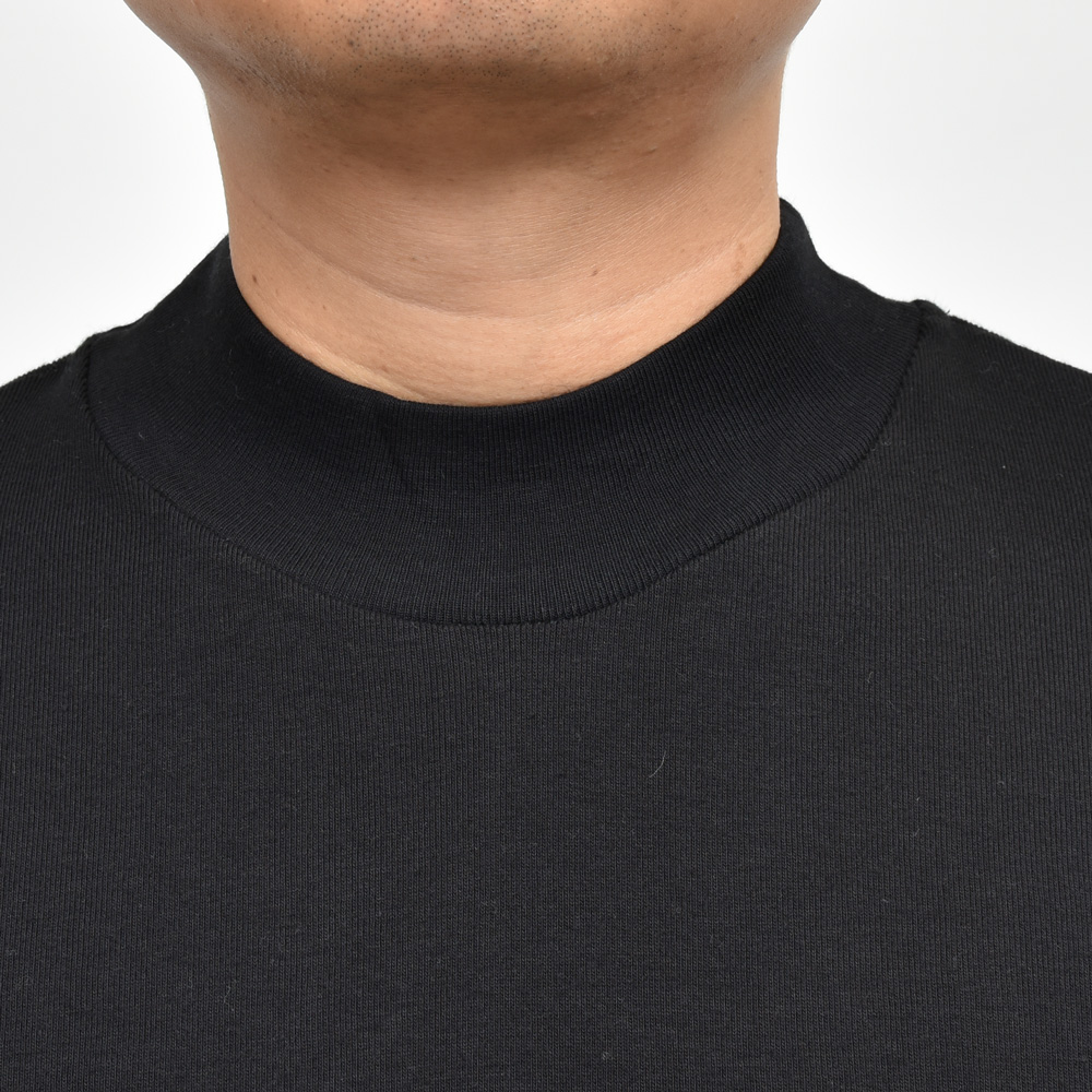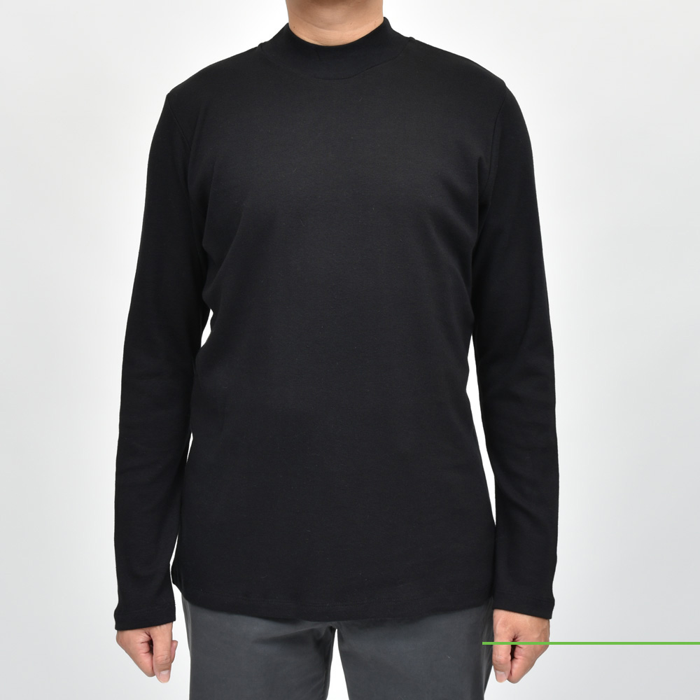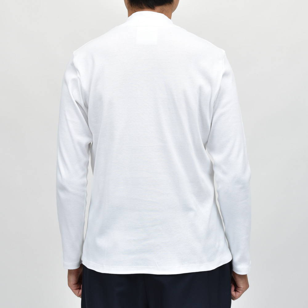 クルーネックの延長で着られるタイプです。モックネックと言っても微妙にネック高に違いがありまして、こちらは低目ですね。