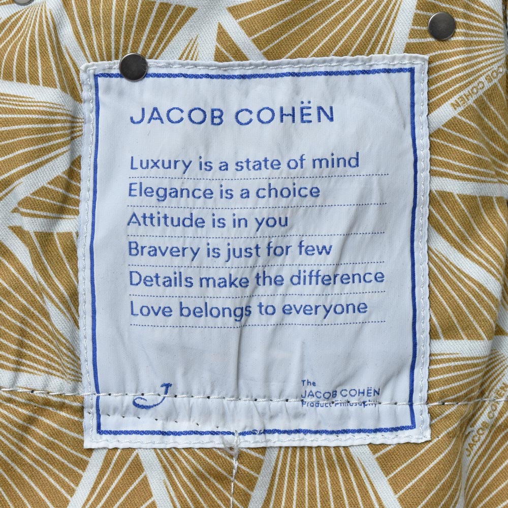 個人的に目を引いたのがバックパッチでして、通常だと定番のカラフルなハラコをはじめ手の込んだ加工が施されるJACOB COHENらしさ全開のパーツなのですが、こちらはシンプルなロゴのみ。しかし素材に牛革を用いることでレザーの力強さを感じさせる、このブランドの中ではやや異色とも言えるストレートな仕上がりです。