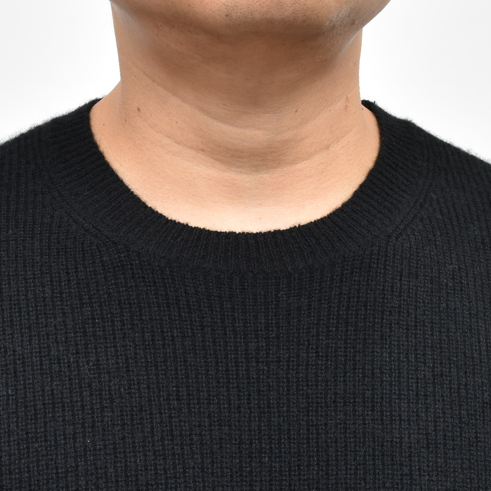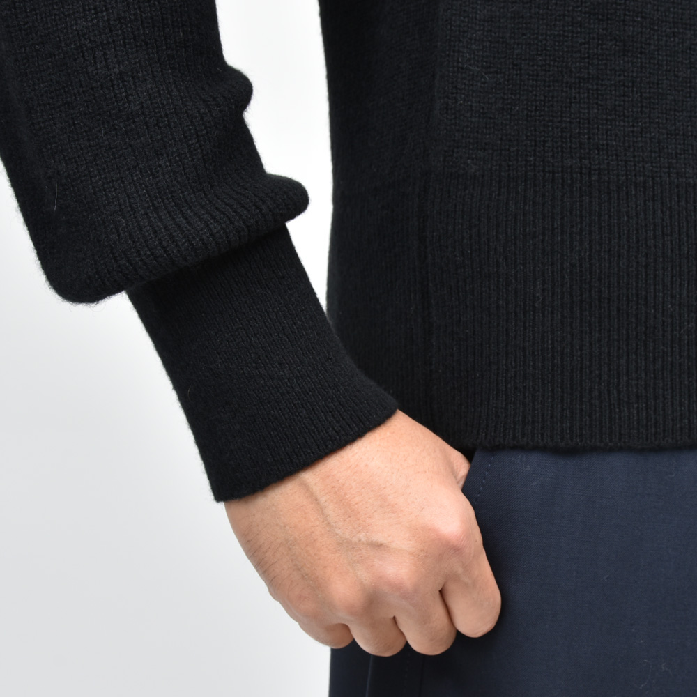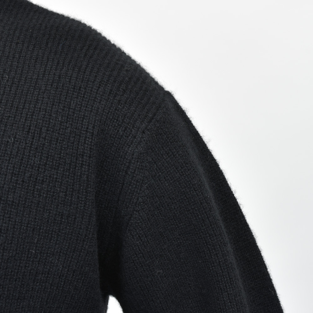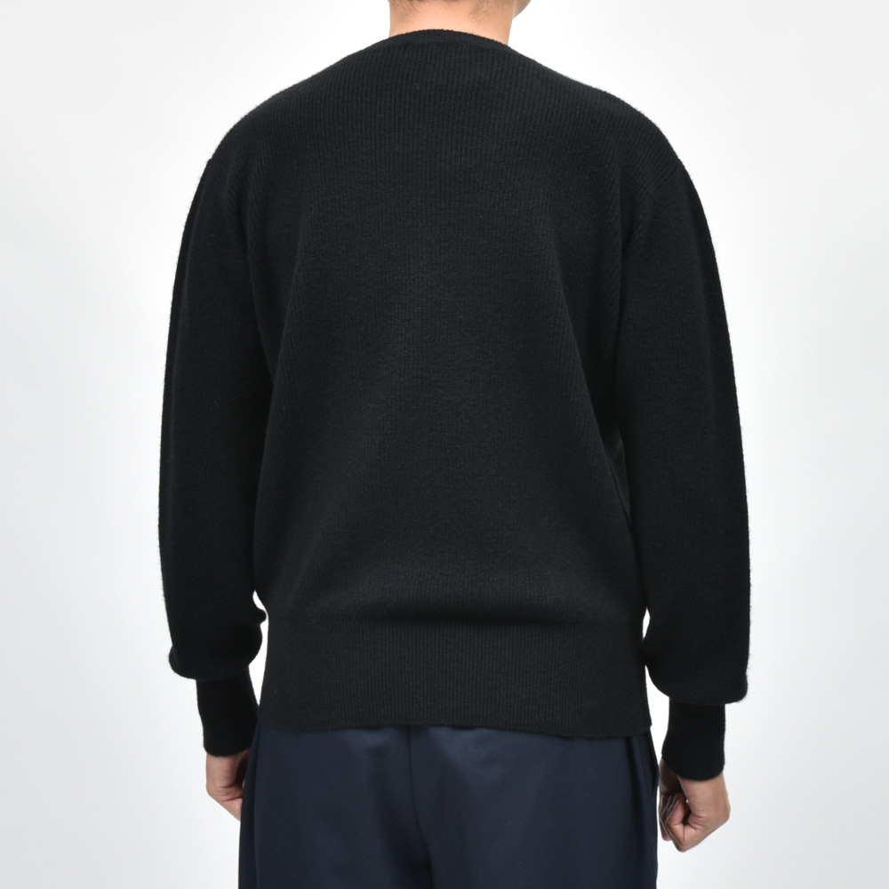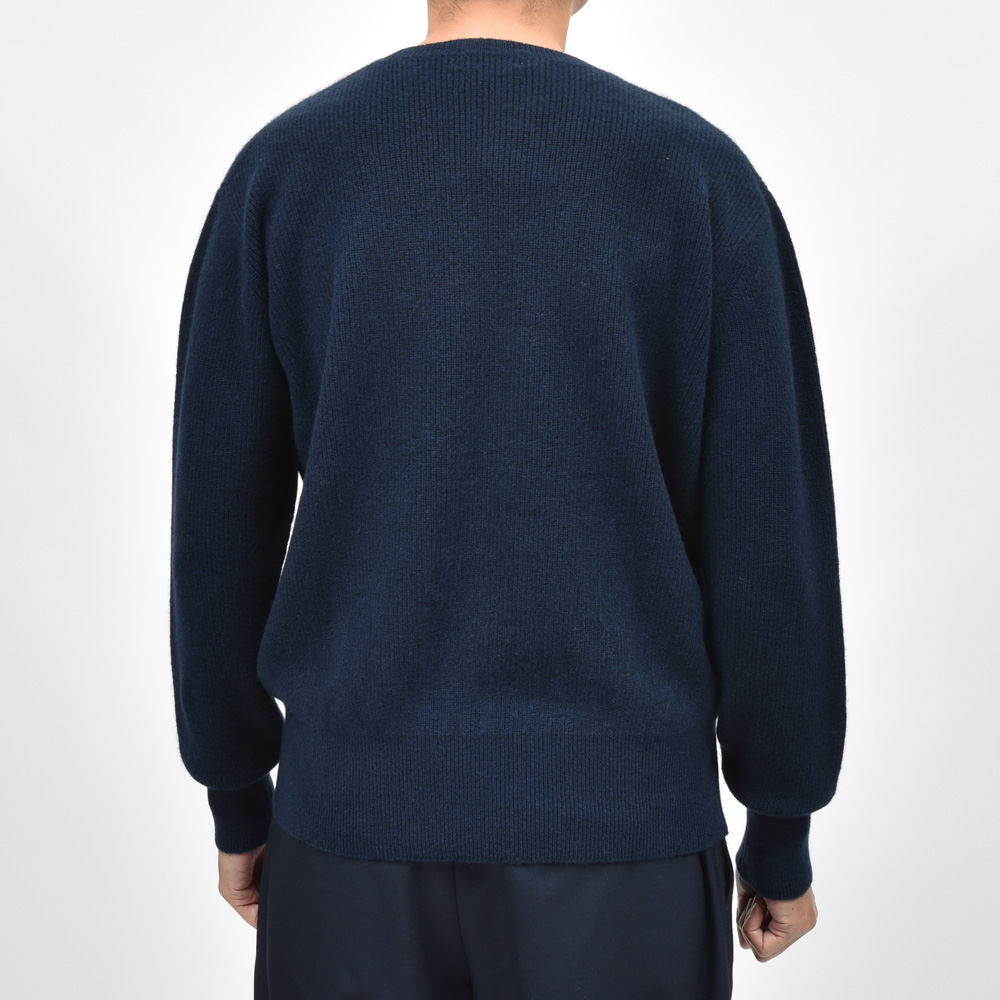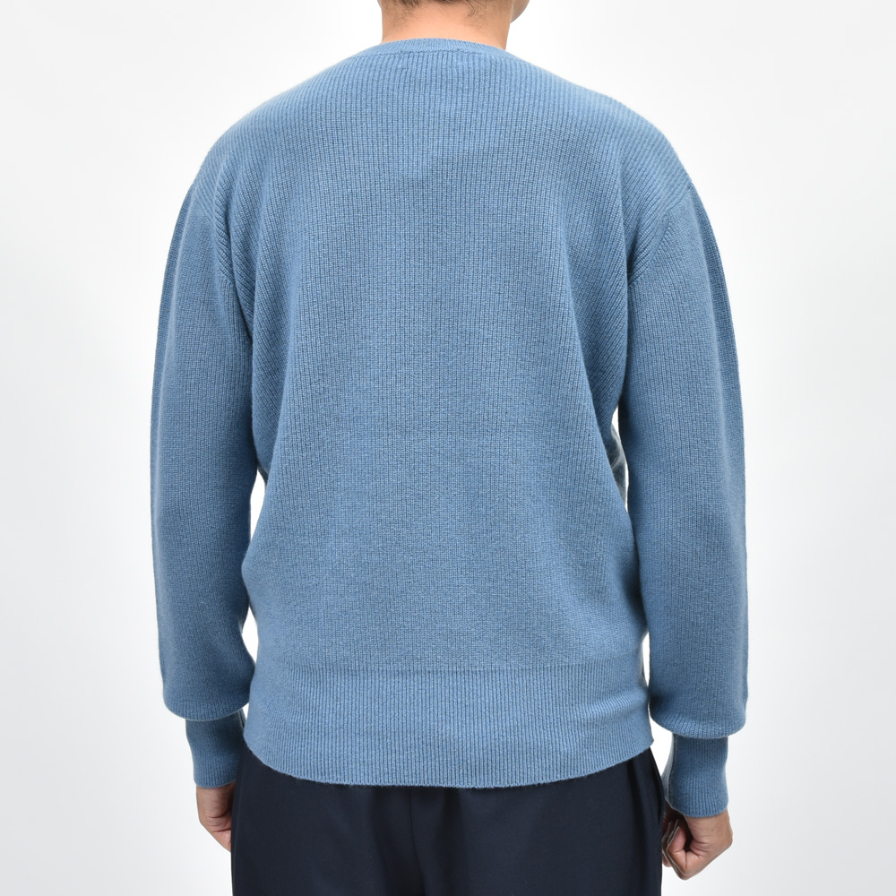 カシミア100%でこの糸分量を使っている、ということを考えるとかなり良心的な感じもしますね。また何よりアイテムとして非常に使い勝手が良いというのも大きなメリット、シャツやカットソーなどもレイヤードしやすいサイジングになっていて、かつアウターなども羽織りやすい絶妙なバランス感。