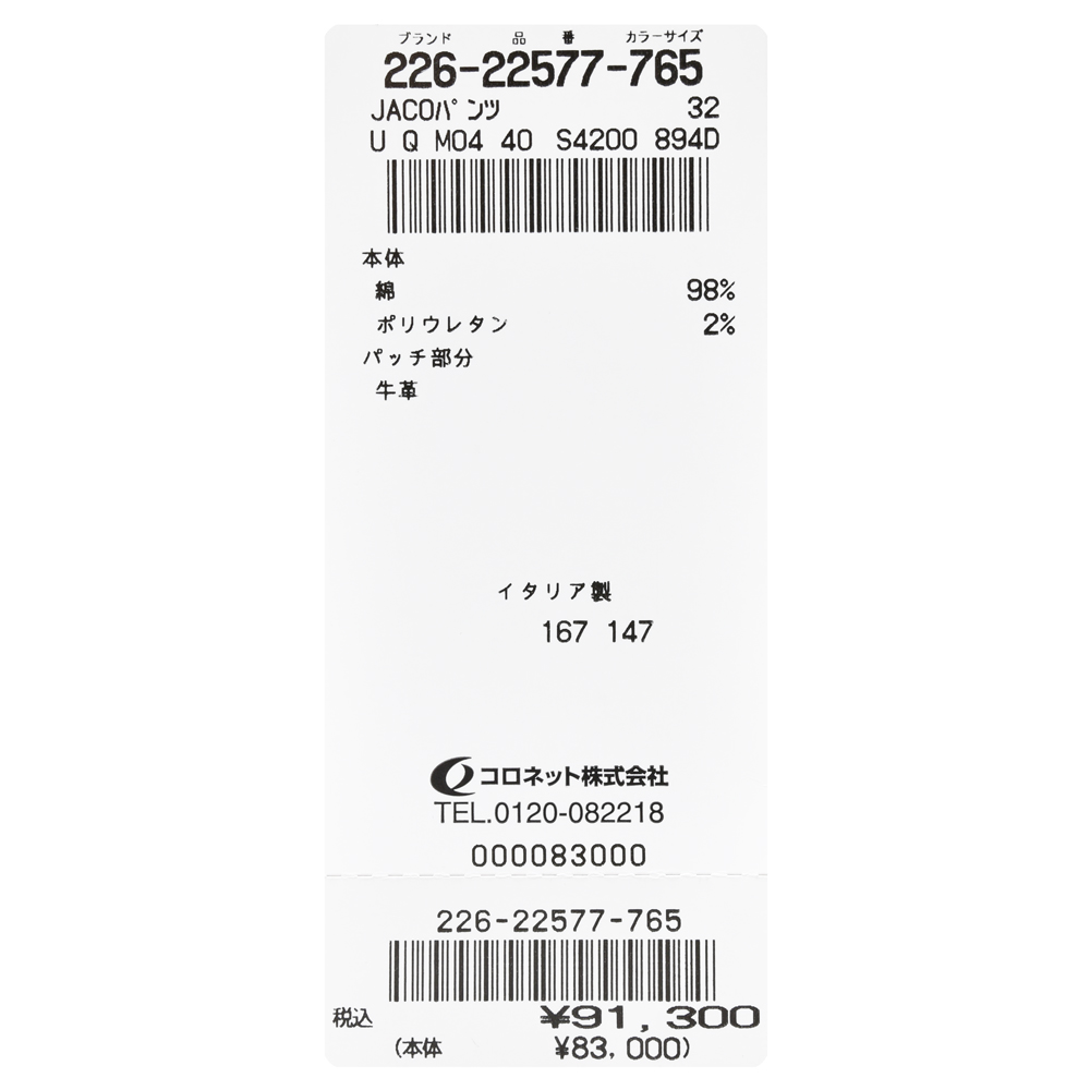 シルエットにはJACOB COHEN(ヤコブコーエン)のコアである人気モデルBARDを採用、股下から裾まで綺麗に見せてくれるテーパードの効いたスマートなラインが見事なバランスを生み出しています。