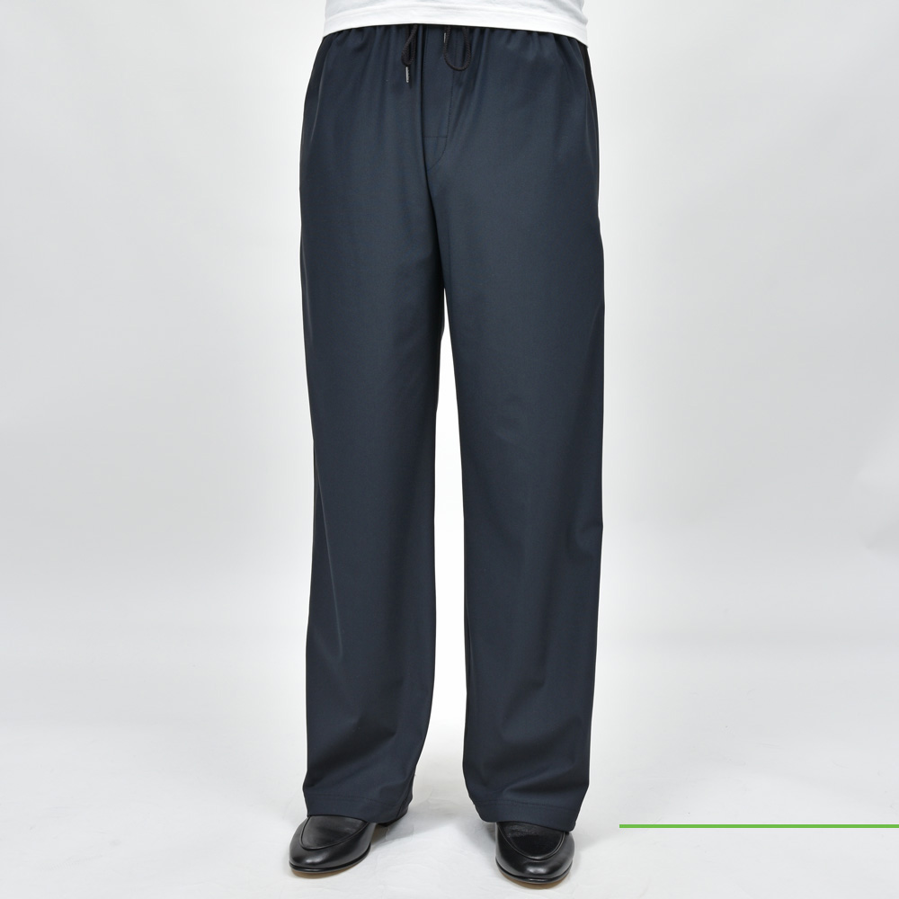 定番のサイドラインパンツ、mando謹製になるのでアクティブながらも全体的に落ち着いた品のある表情になっています。ジャージ素材を採用していますが足元はスニーカーだけでなく、レザーシューズでもフィットするのが嬉しいところ。