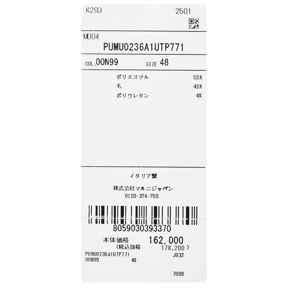 MARNI(マルニ)のイメージというと華やかさが真っ先に挙げられるかもしれません、ですがそういった華やかなアイテムを際立たせる為にはこういった静謐さを持ったパンツも必要不可欠なんです。