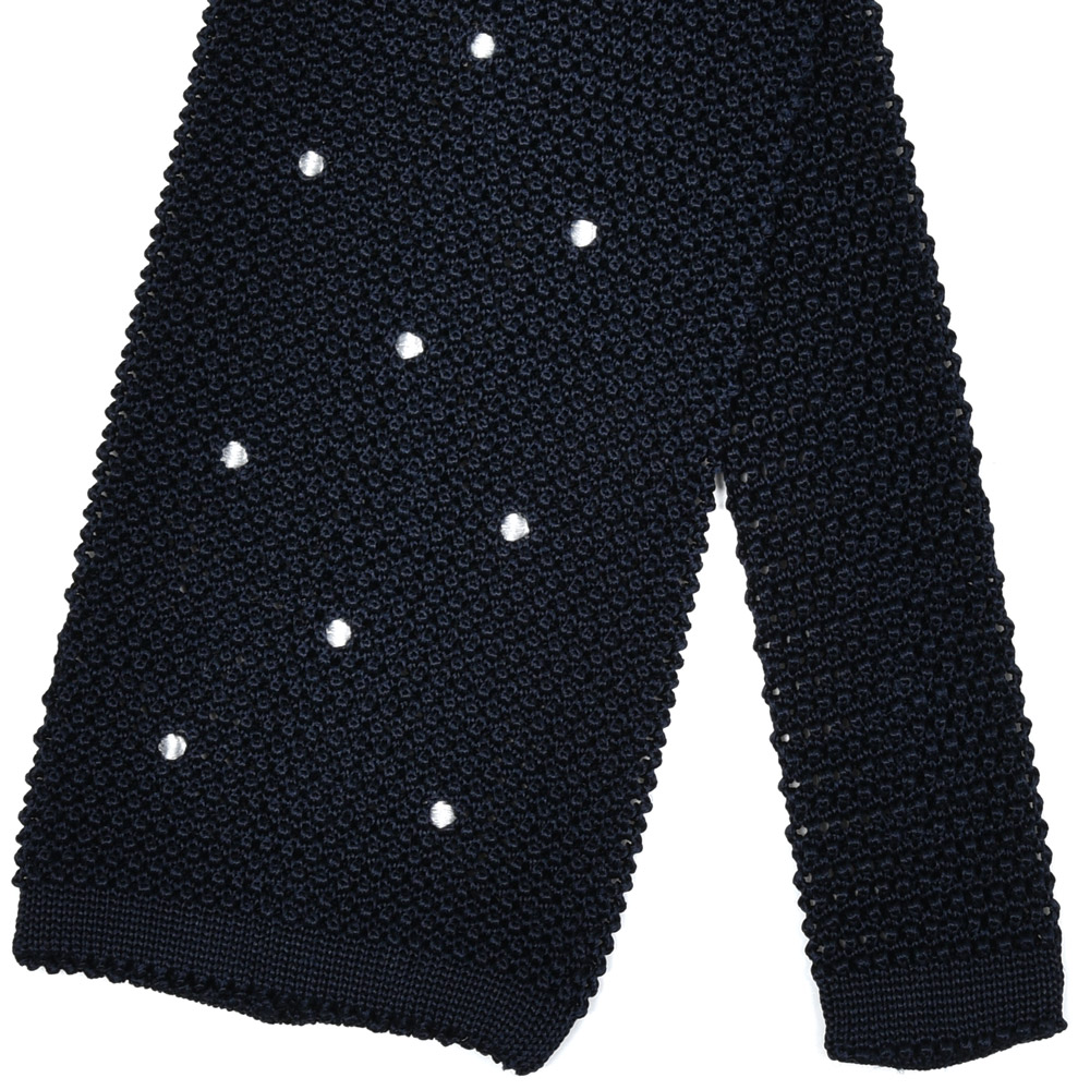 一定の支持を得ている人気のAtto Vannucciの幅広ニットタイ。ドット柄が刺繍にてあしらわれた一本です。