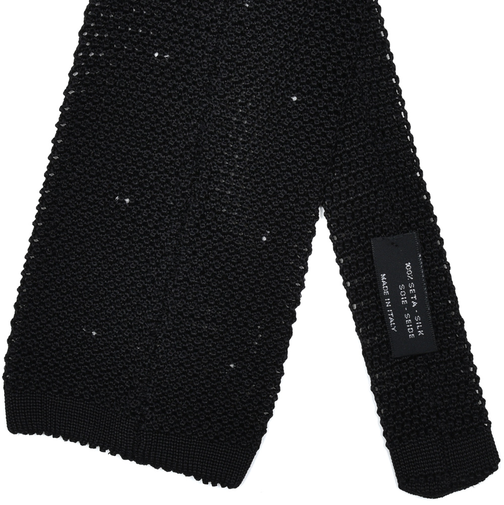 大剣幅にこだわりが見えるシルクニットタイ。通常のニットタイは大剣幅が6cmほどですが、こちらは大胆にも8~8.5cmあります。