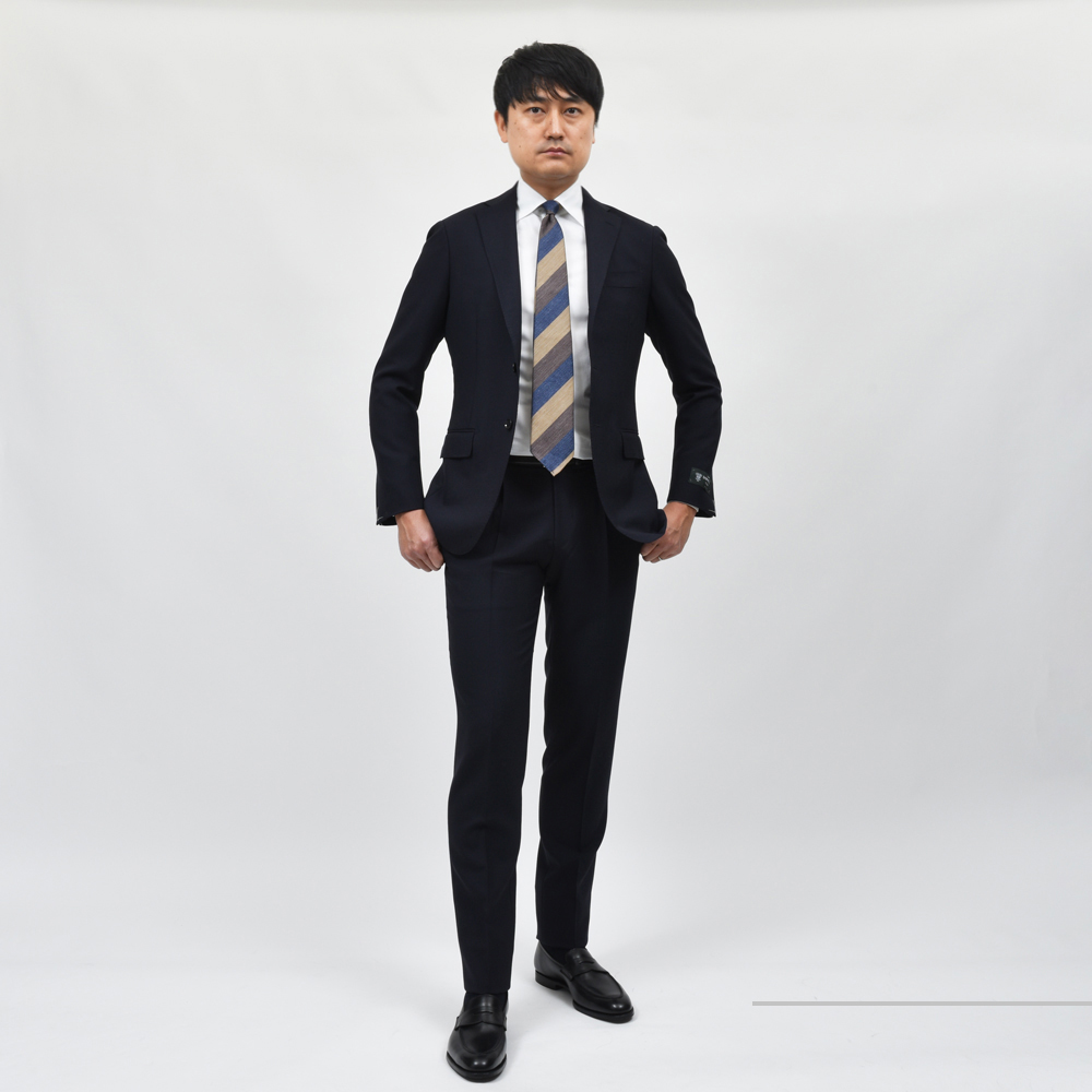 名ファクトリーの卓越した技術と、英国DORMEUIL社の「TONIK2000」を使用したgujiオリジナルスーツ。