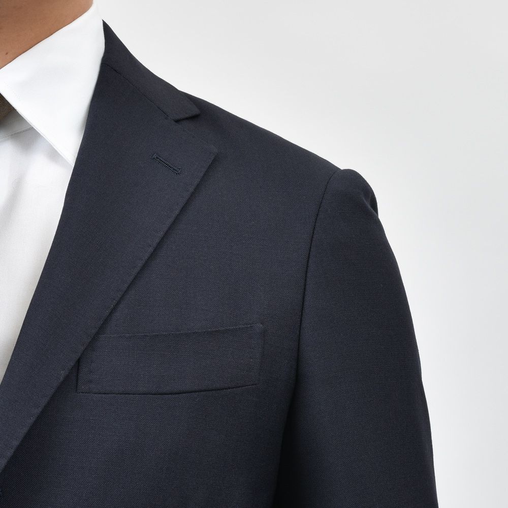 最高級キッドモヘアによる爽やかな通気性と上品な光沢が魅力です。春夏の装いにふさわしい一着に仕上がっています。