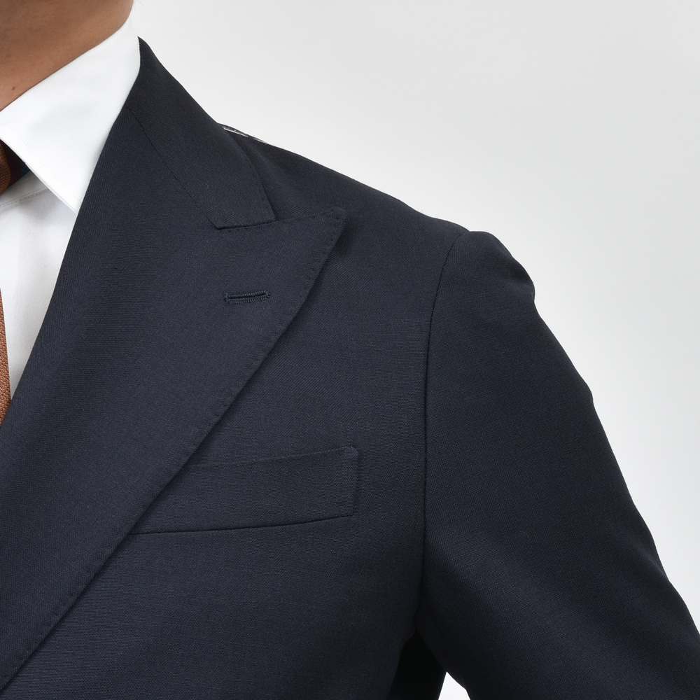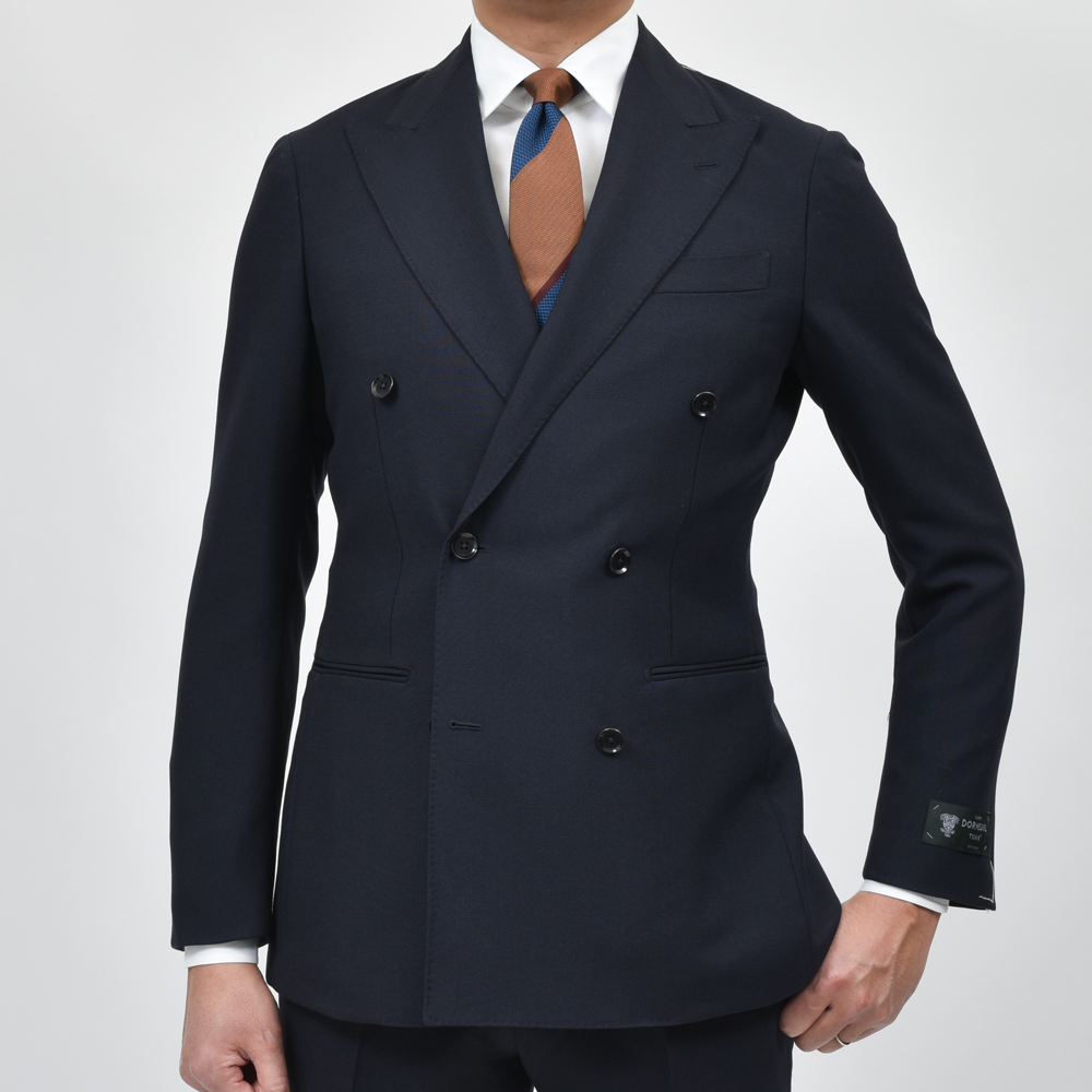名ファクトリーの高度な技術と英国DORMEUIL社の「TONIK」ファブリックを使用し、クラシカルなデザインながら快適な着心地も実現したgujiオリジナルのダブルブレストスーツです。