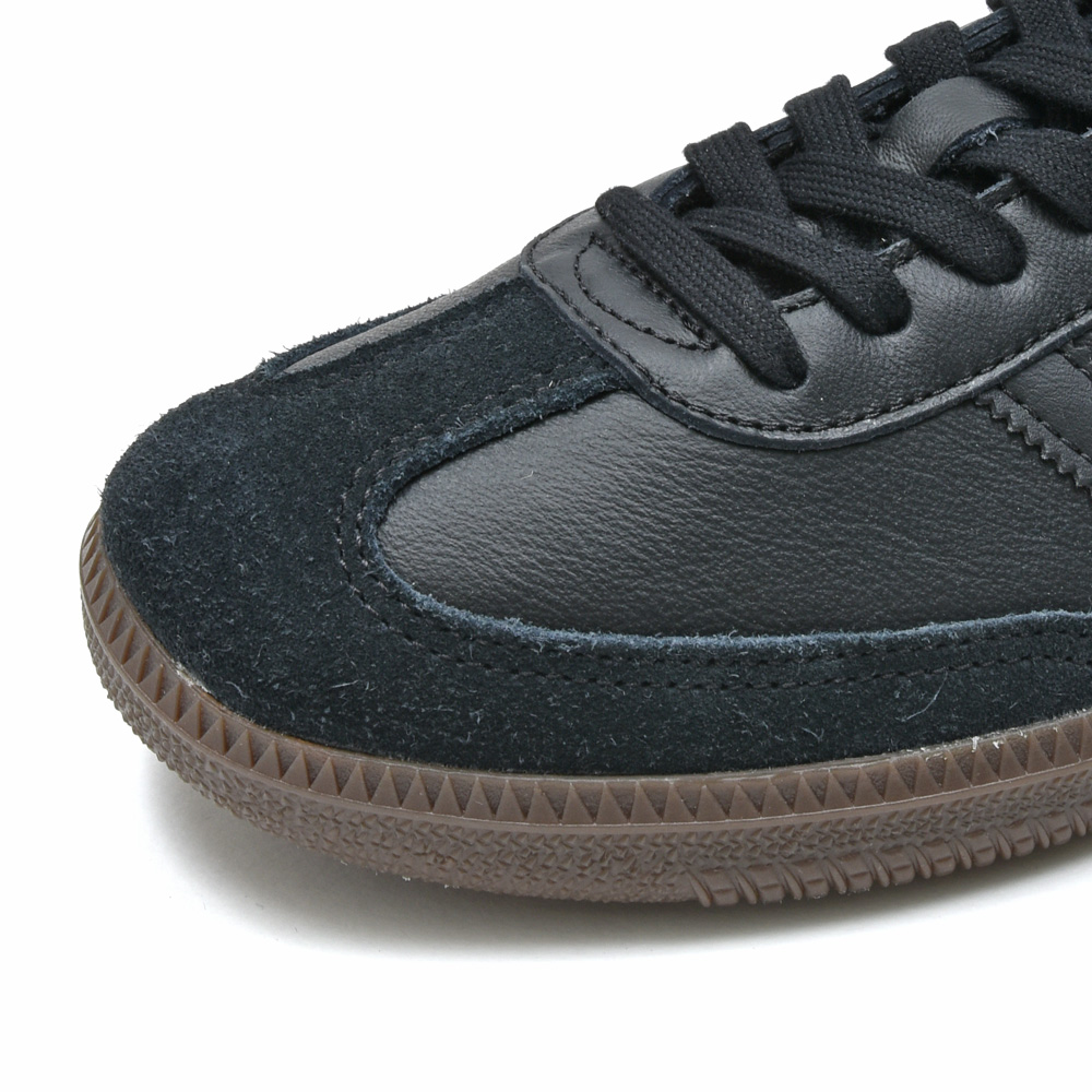 ブラックのアッパーにガムソールの組み合わせ、ストライプもブラックなのでより洗練されています。スポーツ感は控えめになっているのが最大のポイントでしょうか。