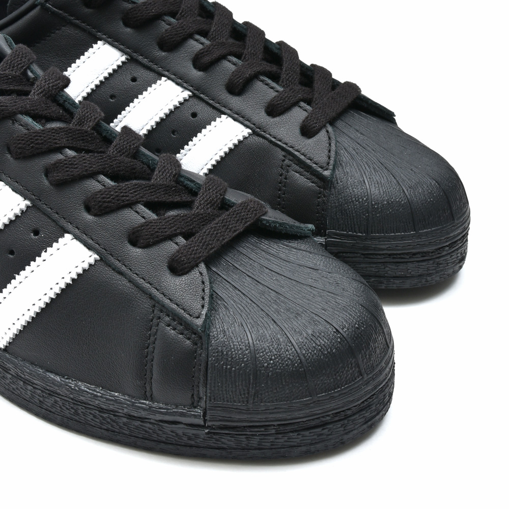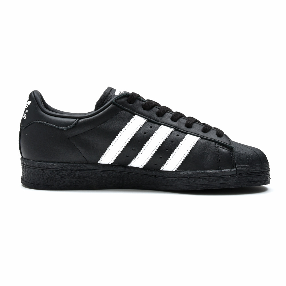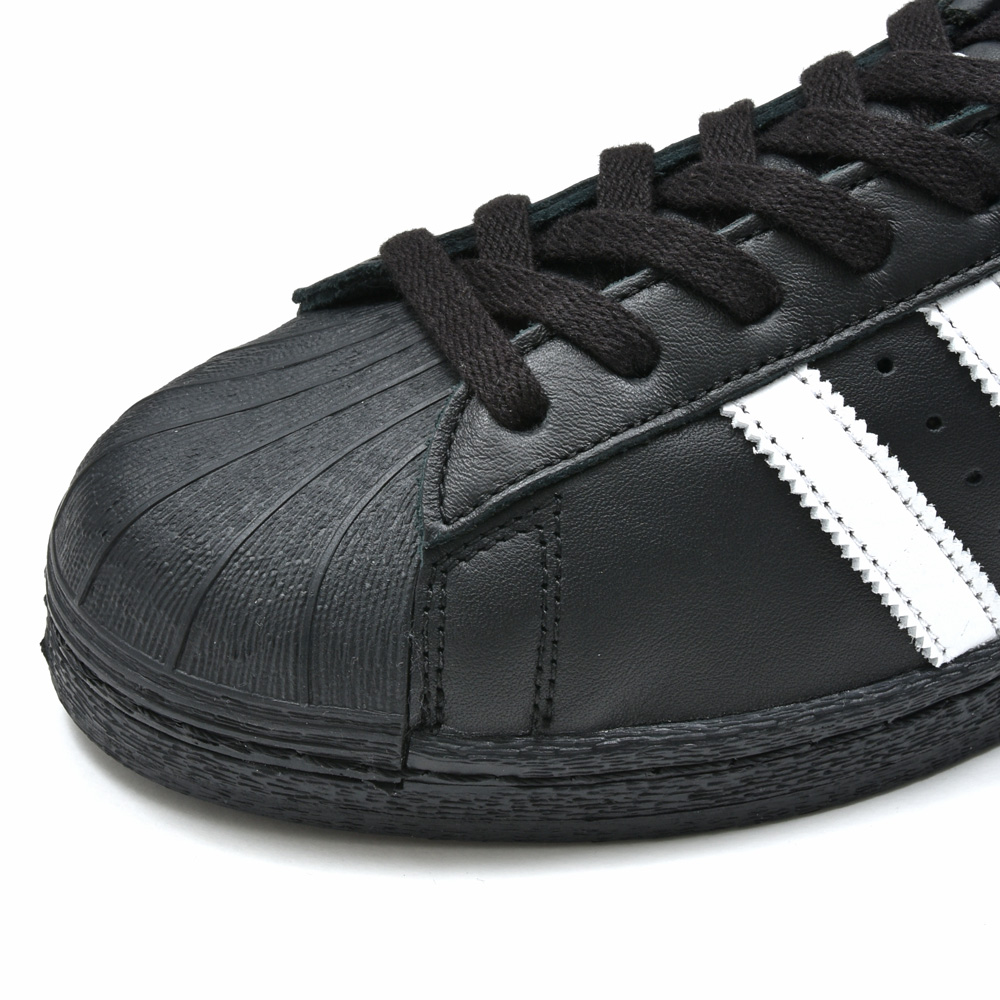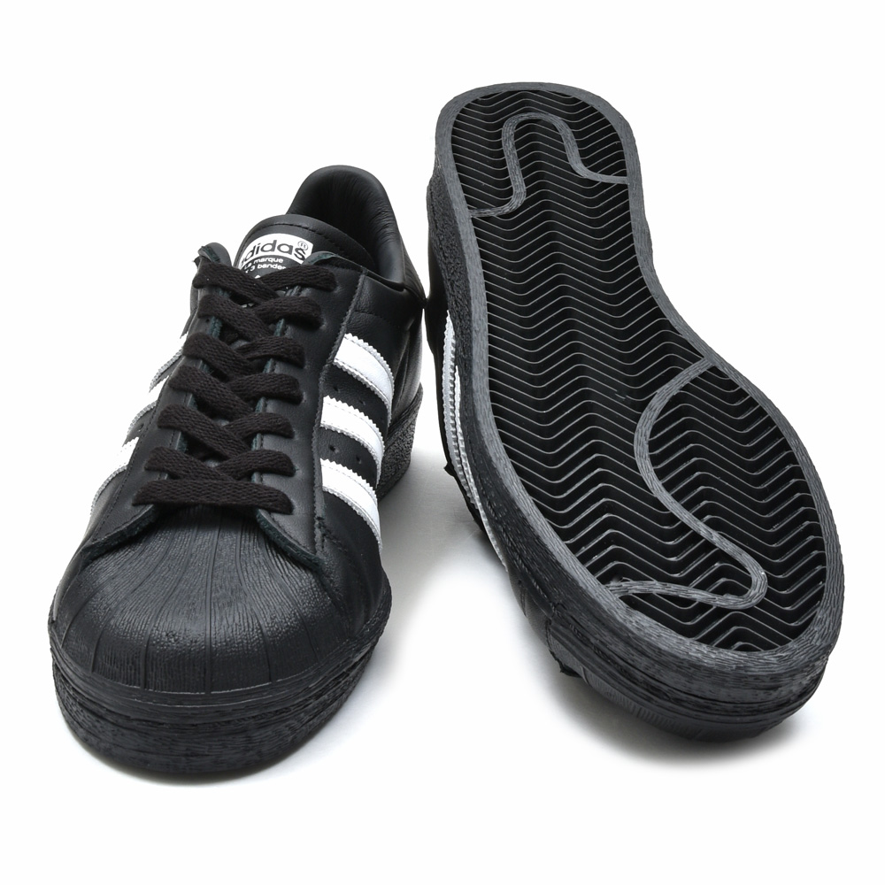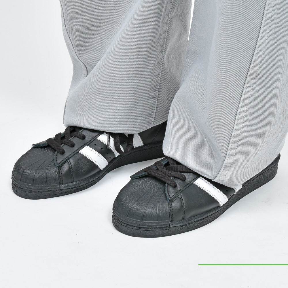 adidas(アディダス)は普遍的なモデルを数多く持っています、その中の一つがこちらのSUPERSTAR。今回はスリーストライプ以外はブラックで纏めたストイックな仕上がりのモデルをチョイス。形は82年モデルを採用、特徴的なシェルトゥに関しても目立ちすぎず全体的に沈んだ印象になっていますので普段のスタイルにも合わせやすく適度なスポーティさも得られる汎用性の高い一足になっています。