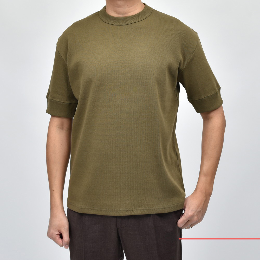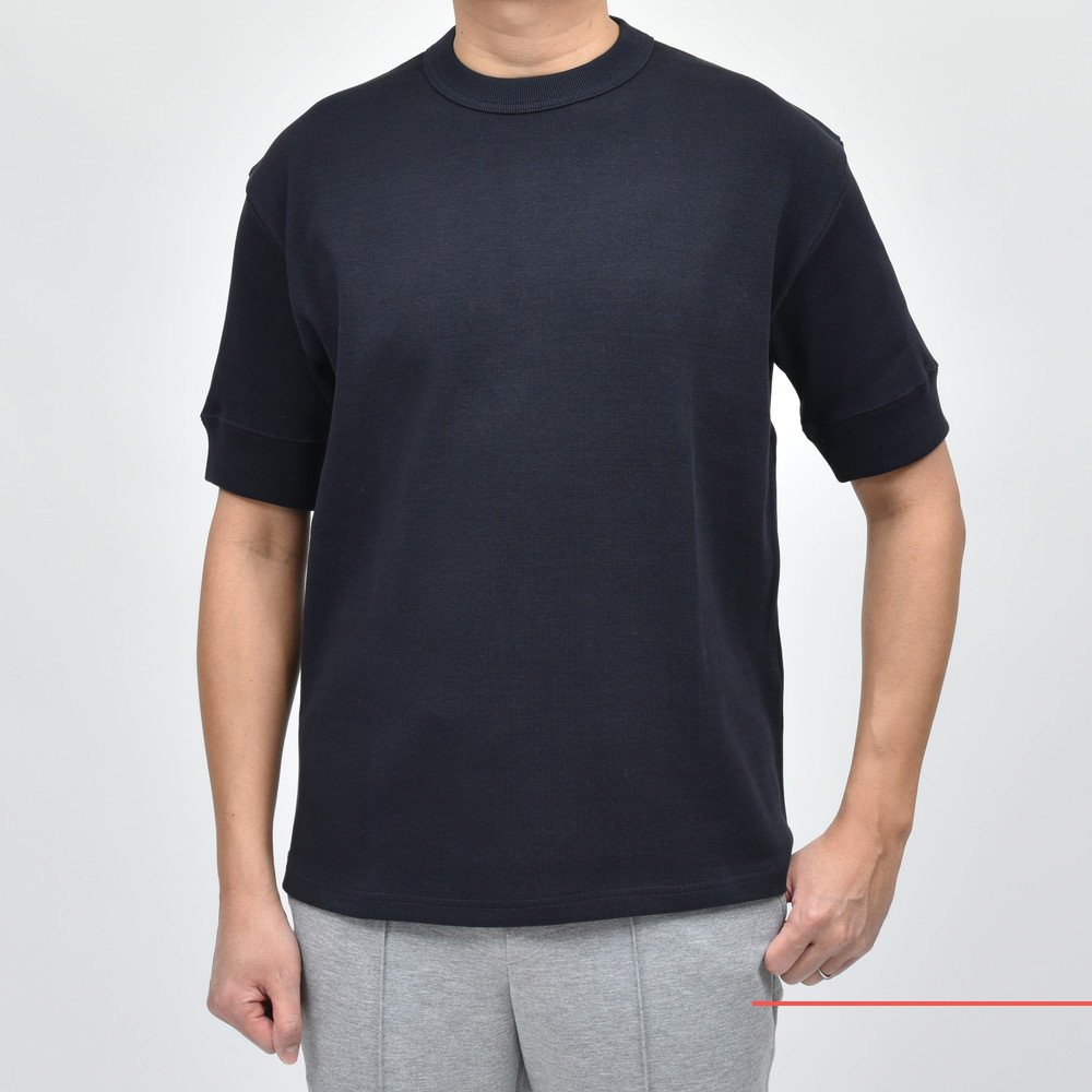 カットソー生地にしてコシとしなやかさを併せ持つことで着心地に優れ、洗濯を繰り返してもへたることの無いタフさも備えます。