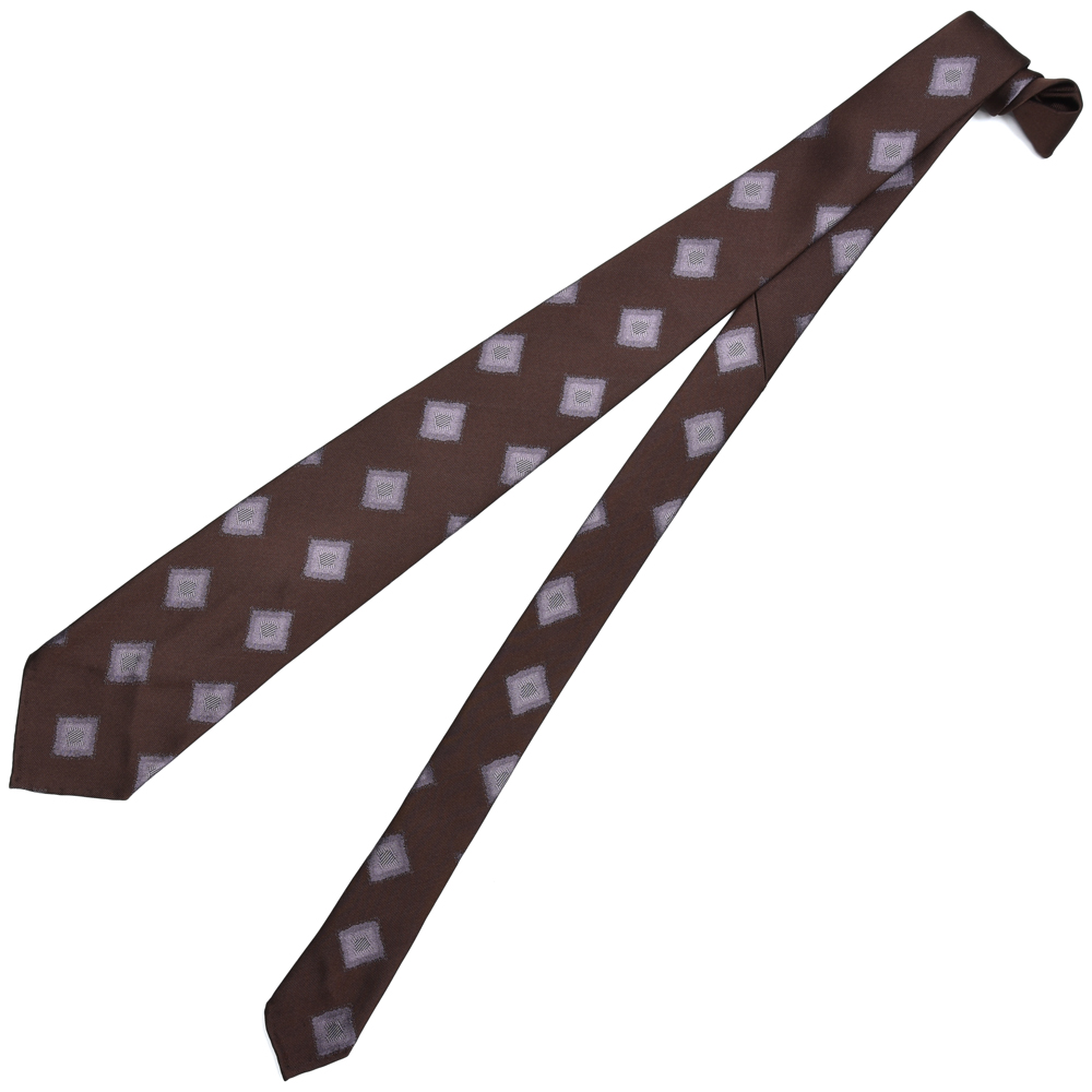 光沢感のあるファブリックにぼかしがかかったようなダイヤパターンが特徴の一本。落ち着いたベースカラーに配された淡いカラーのダイヤパターンは調和されたコントラストでまとまっています。布地を斜めに使用することで単調なパターンではなく動きを感じさせます。