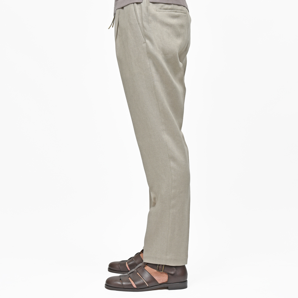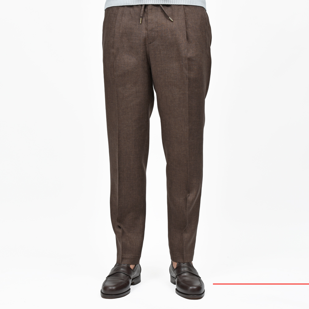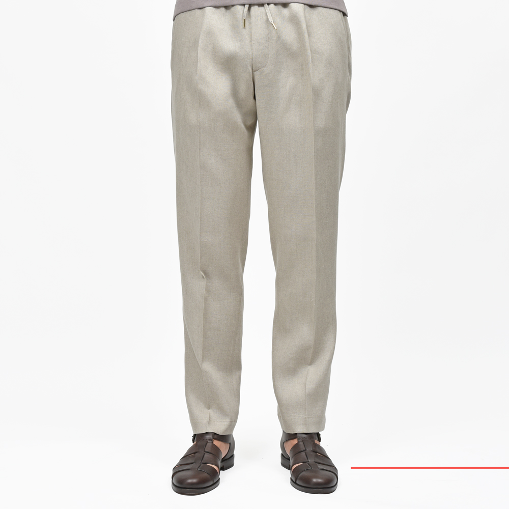 夏にサラリと穿いて頂けるリネン素材はニットソーやポロ、軽いシャツとのコーディネートに最適ですね。