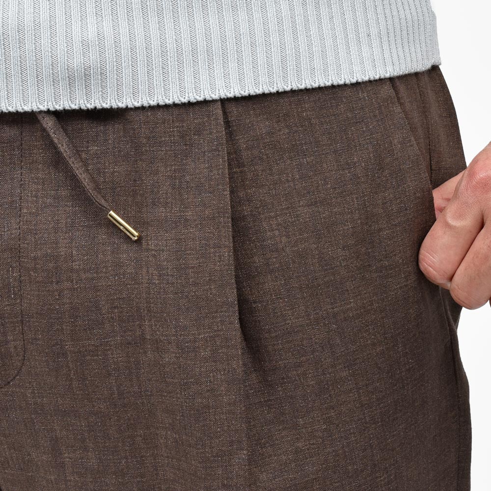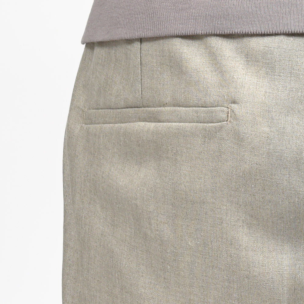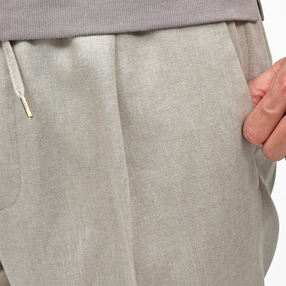 生地はリネン100%。通気性に優れ、熱を閉じ込めないことから真夏でも快適に穿いて頂ける清涼ファブリック。