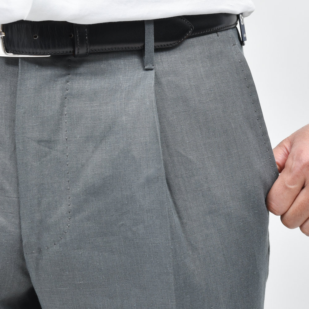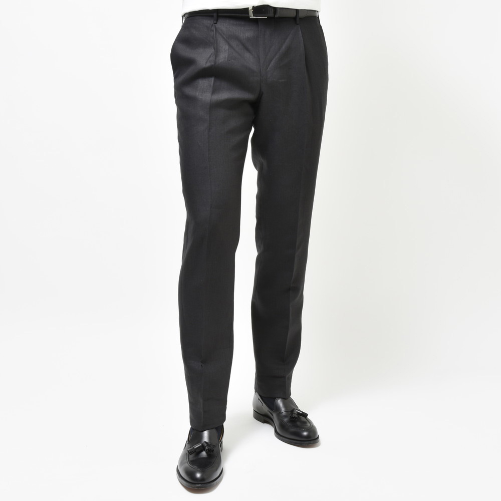 やや細身で美しいテーパードシルエット、1プリーツ仕様にすることで程よくクラシカルな印象になっています。