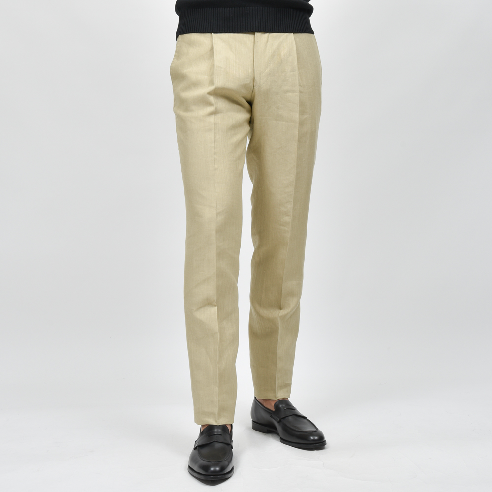 スリムテーパードの定番モデルでリネン100%のドレスパンツもご用意しました。