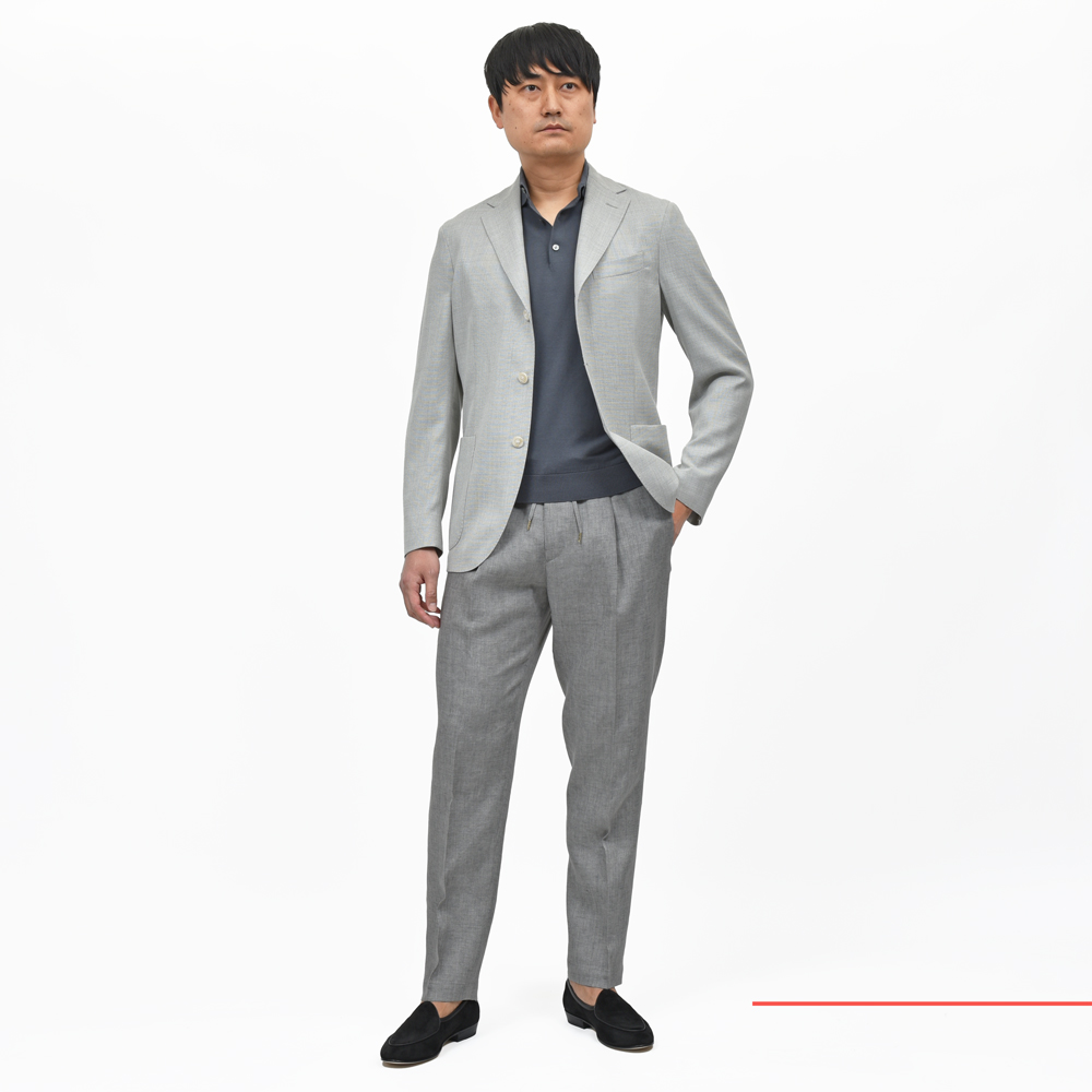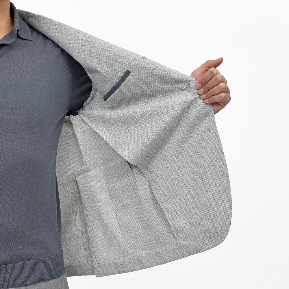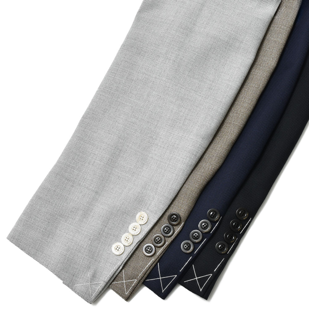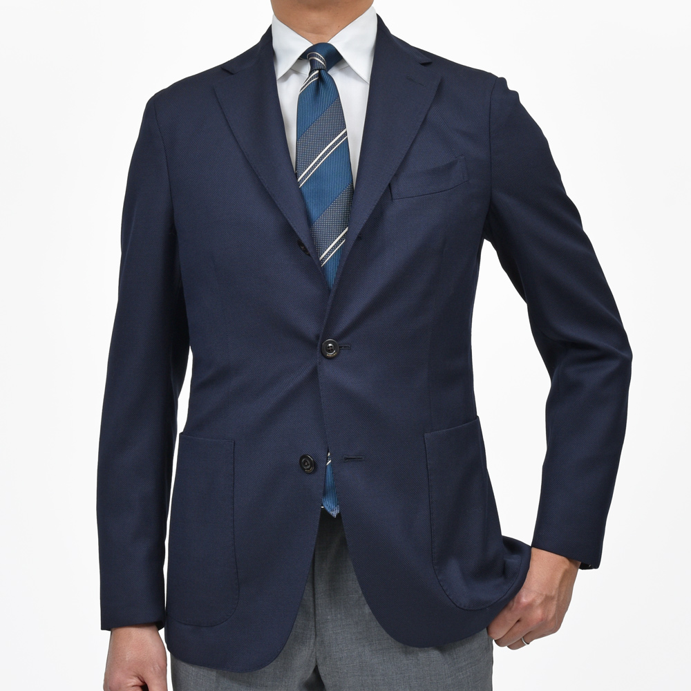 ジャケットの基本的な生地としてよく上がるのがホップサック、特にこちらは軽やかな生地感になっていますので夏であっても着用していただけるタイプになっています。