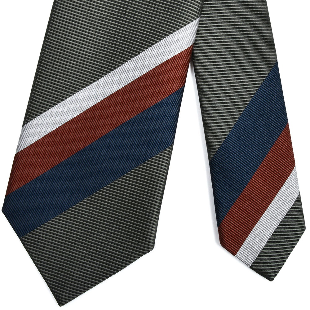 『色調と彩度のコントロールによる柔和な印象のストライプタイ』