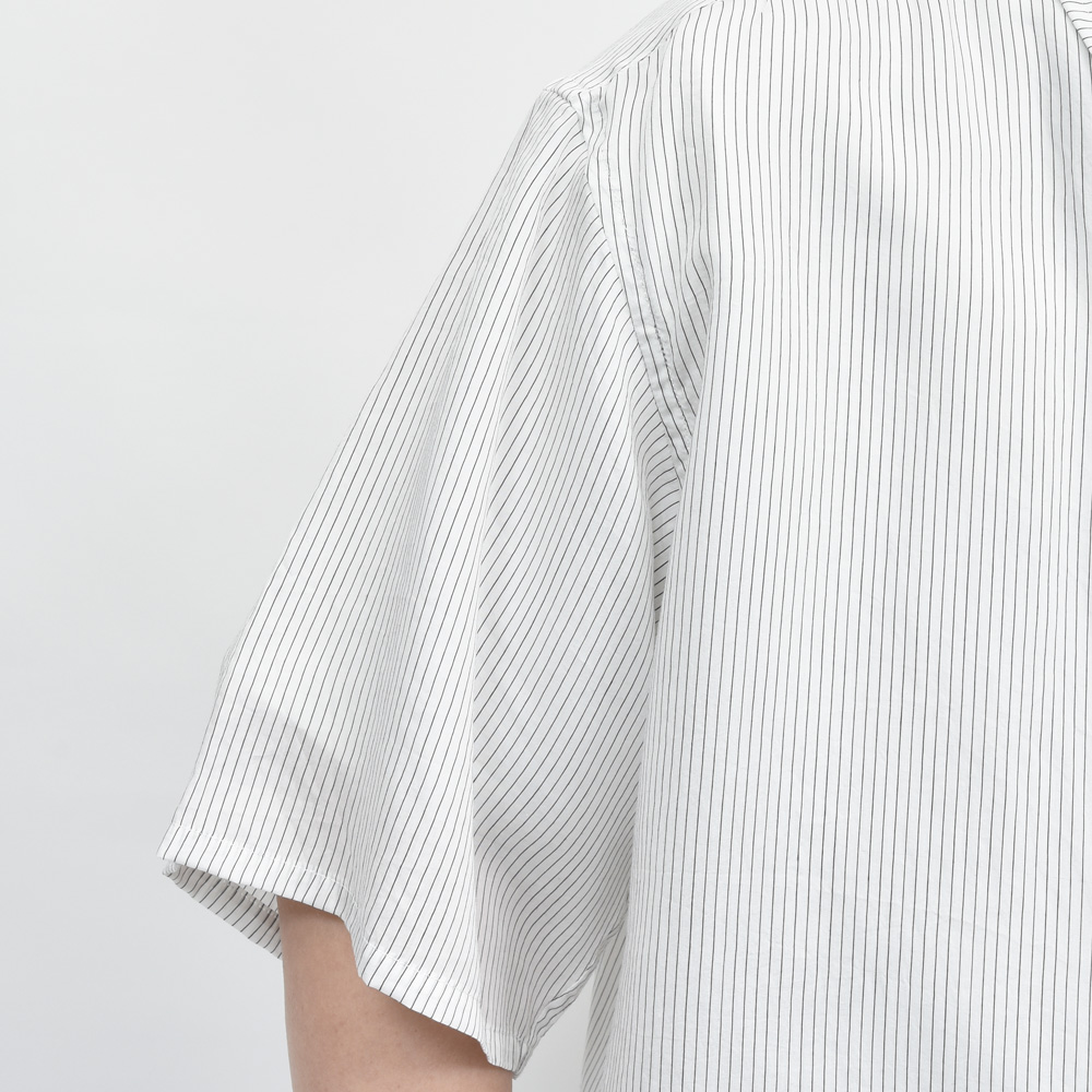 胸ポケットは大きめサイズ、ストライプは細めのものを採用することによってカジュアルでありながらも品を感じさせるバランスに仕上がっています。