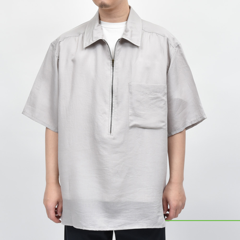こちらはやや意外性のあるハーフジップタイプを採用、ゆったりとしたリラックス感のあるシルエットに生地はとろみのあるリヨセルシルクをのせることによって軽やかさを意識した一着に。ドレープ性と吸湿性、速乾性に優れたリヨセルシルクは高級感と実用性に優れているのもポイント。