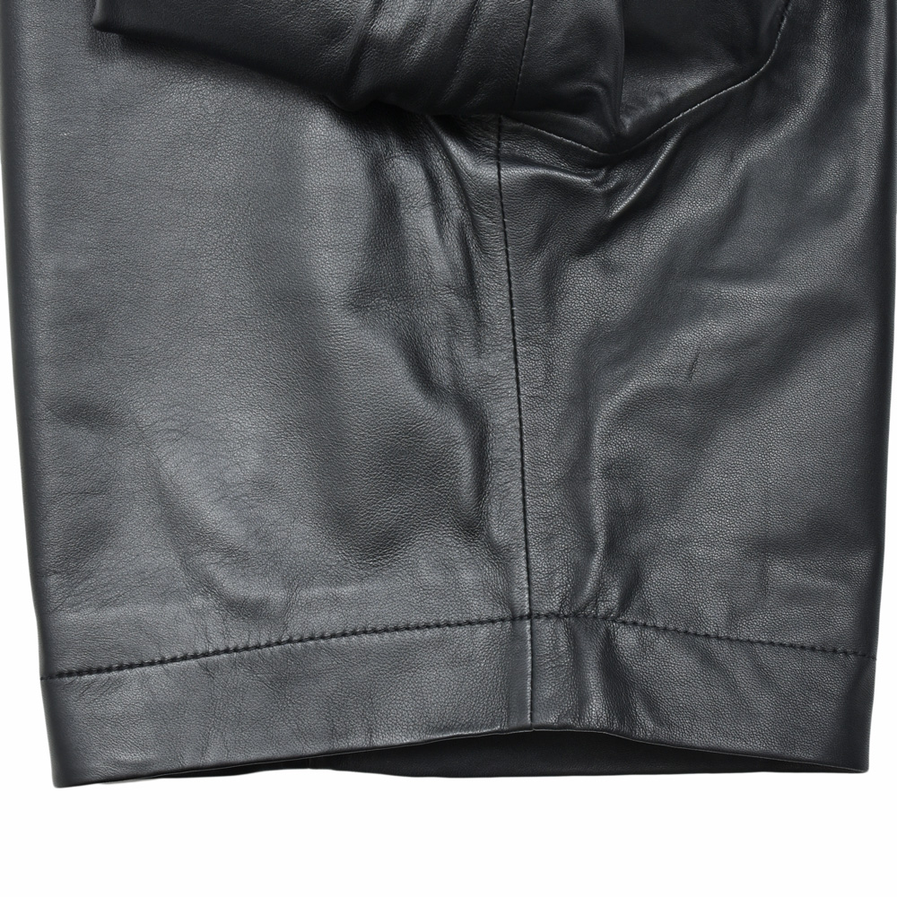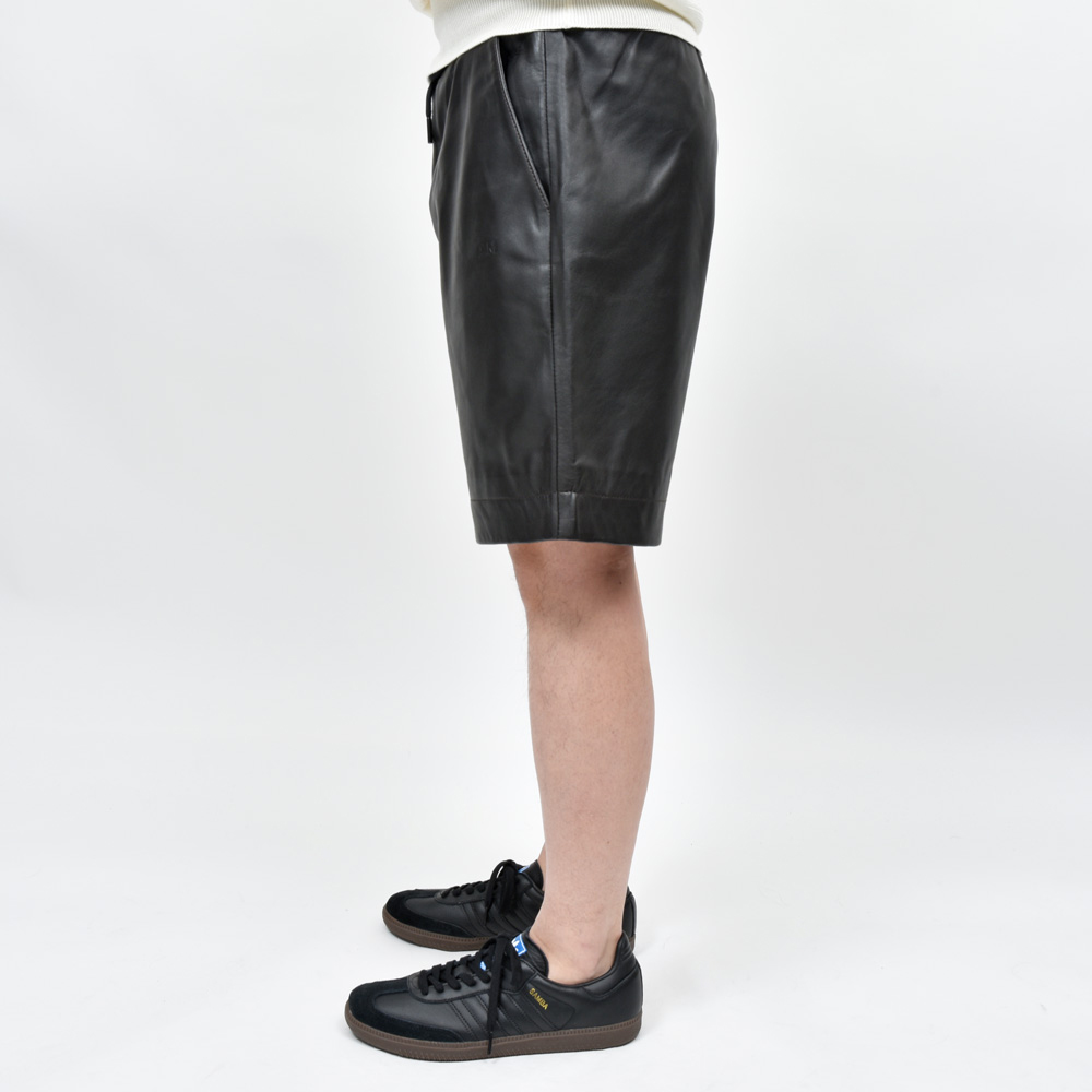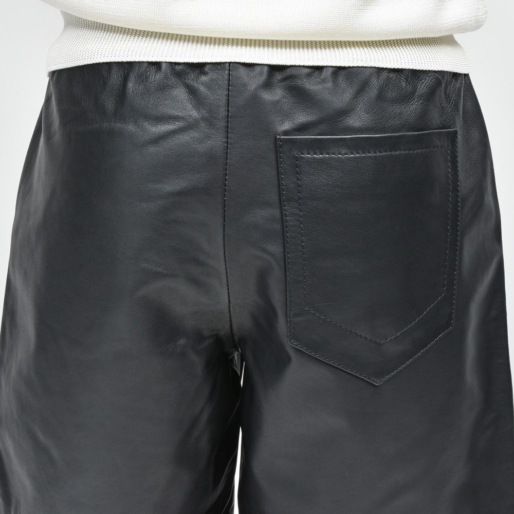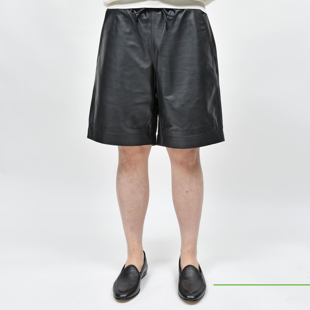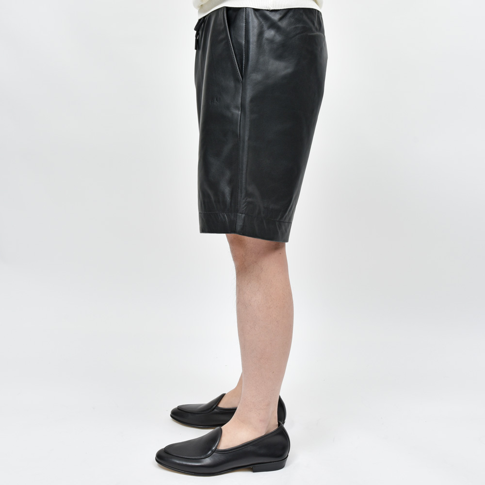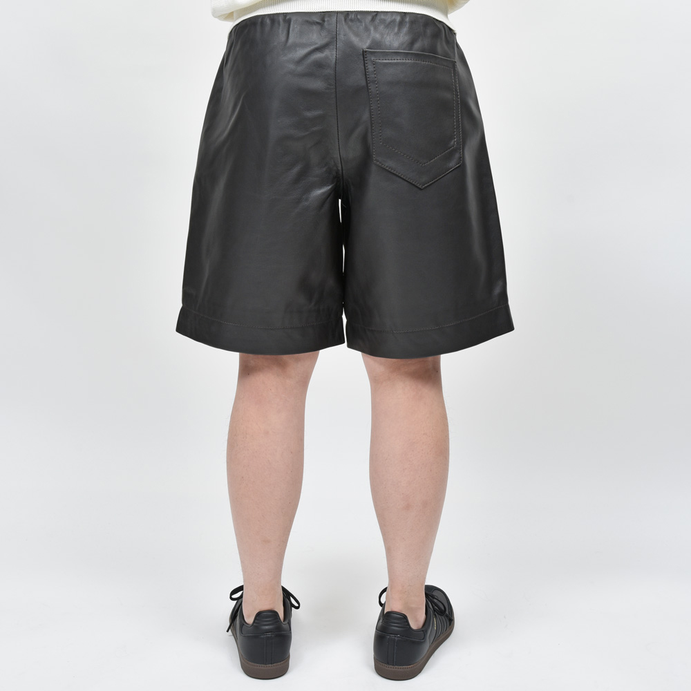 イギリスの多くのブランドの生産を一手に引き受けているファクトリーが提案するA.M LONDON(エーエム ロンドン)。レザーブランドなのでレザーパンツ、ある種ストレートな提案ではありますがこちらは意外性のあるショーツタイプになっています。