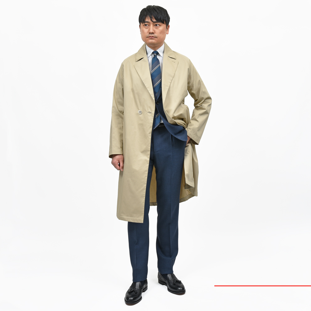 春のコートとしてライトウェイトなコットンギャバジンを採用しました。