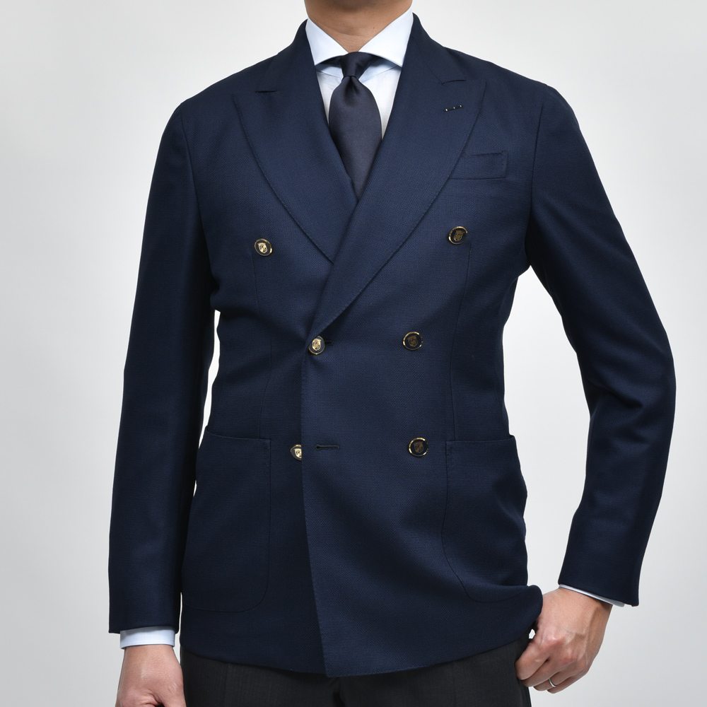 丸みを帯びたラペルに特徴がある同ブランドのダブルブレスト。
