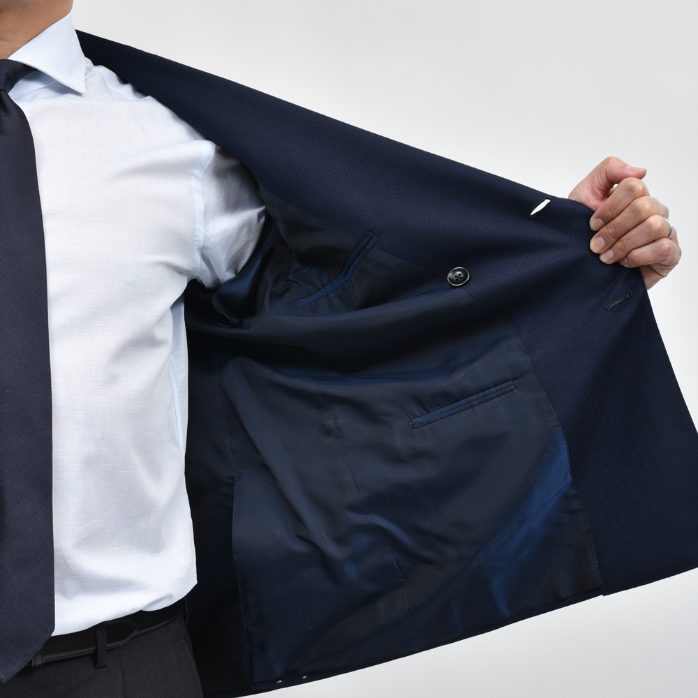 シルエットは、細すぎず程よいゆとりのあるフィット。フルキャンバス仕立てによる立体的なフォルムがエレガントな印象を与えます。