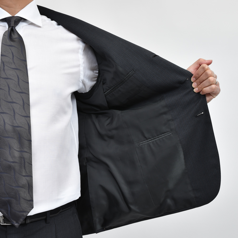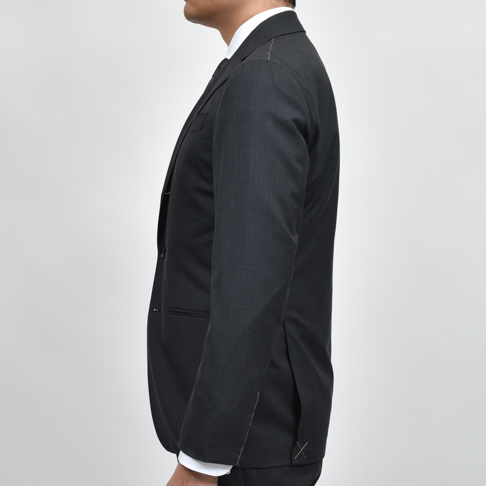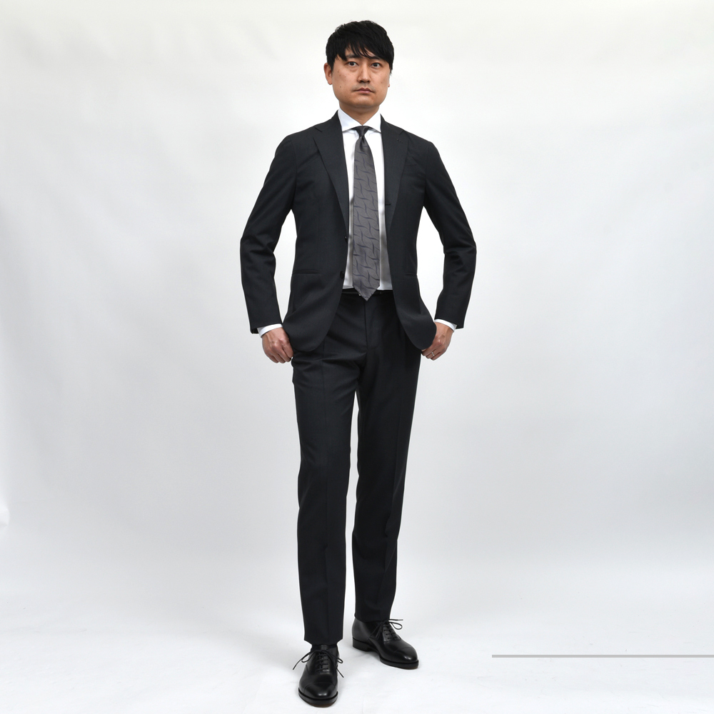 イタリアンクラシックをベースにしたシルエット。細すぎず程よいゆとりを持たせたフィッティングで、フルキャンバス仕立ての立体的なフォルムがエレガントな印象を引き立てます。