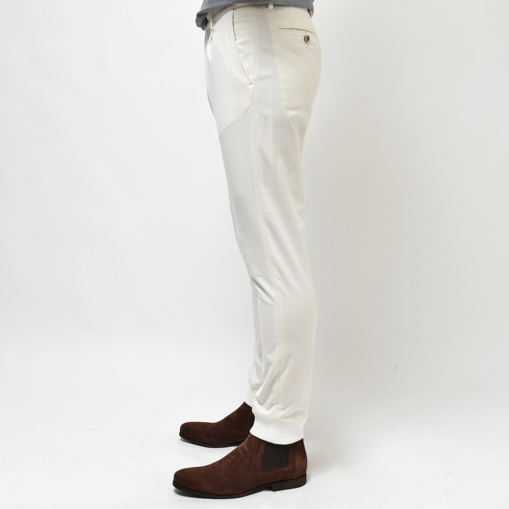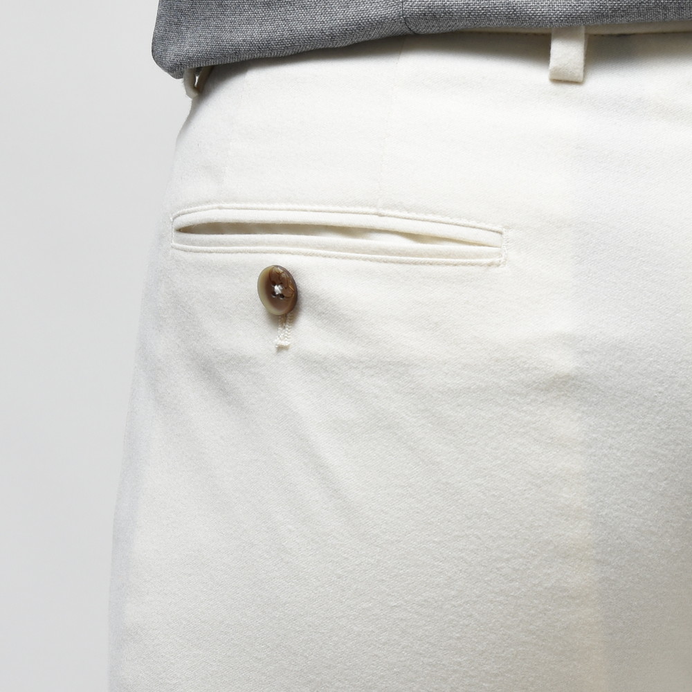 ノープリーツ・太リブのGIORGIOに対し、GIORGINOは1プリーツ・細リブというバランスで、スポーティーさを控えめにしつつ、ドレス感とクリーンさがプラスされた仕上がりになります。