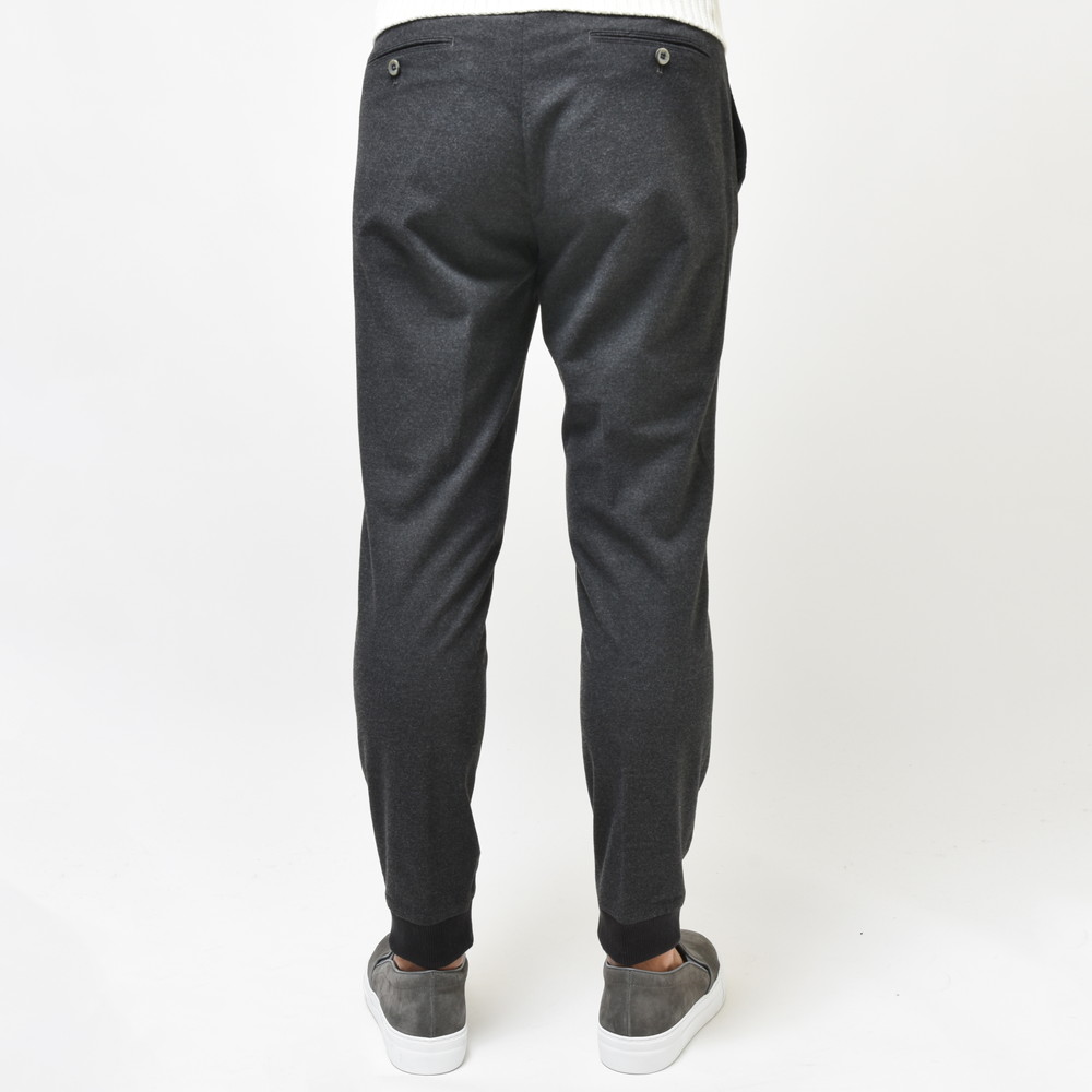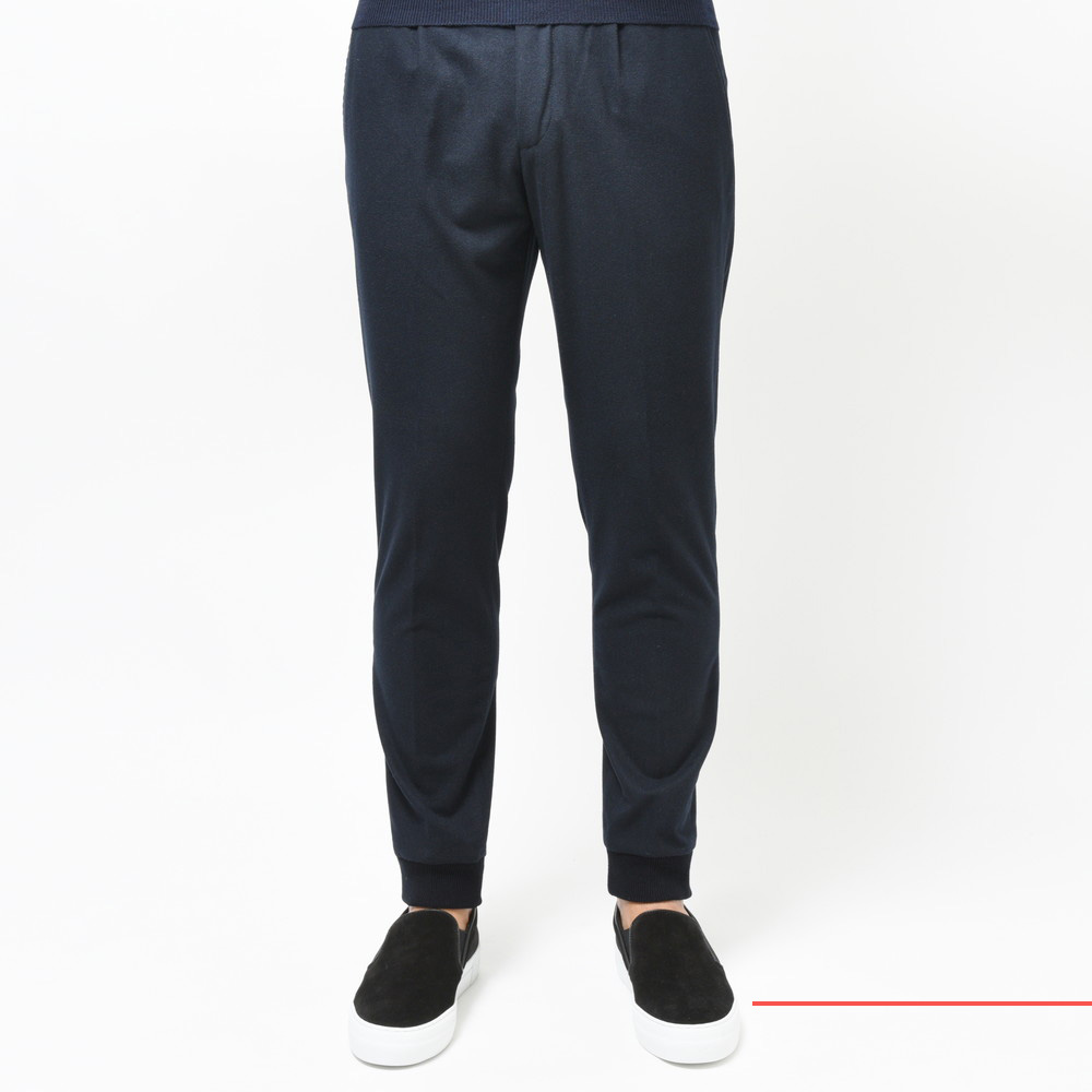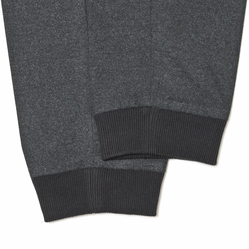 もちろんリブパンツなので運動性能を確保すべくほのかに伸縮する生地ですが、ポリエステルとレーヨンをミックスした素材でフランネルを表現したテクニカルな一本になります。
