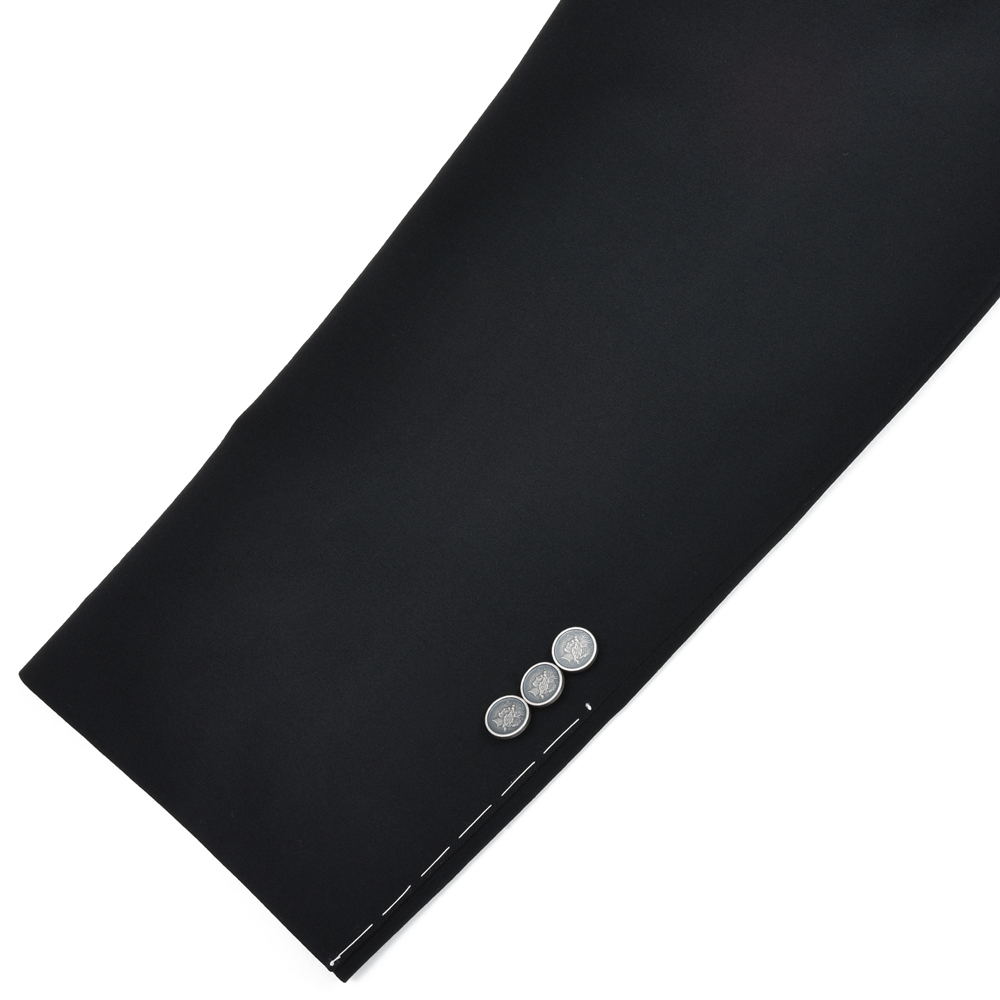 生地にブラックをセレクトしているところが少々以外かもしれません・・・が、実はブレザーのルーツはブラックということで、「ブレザーといえばネイビー」という現代の既成概念を打ち破るという意味でもニュークラシックといえるかと思います。