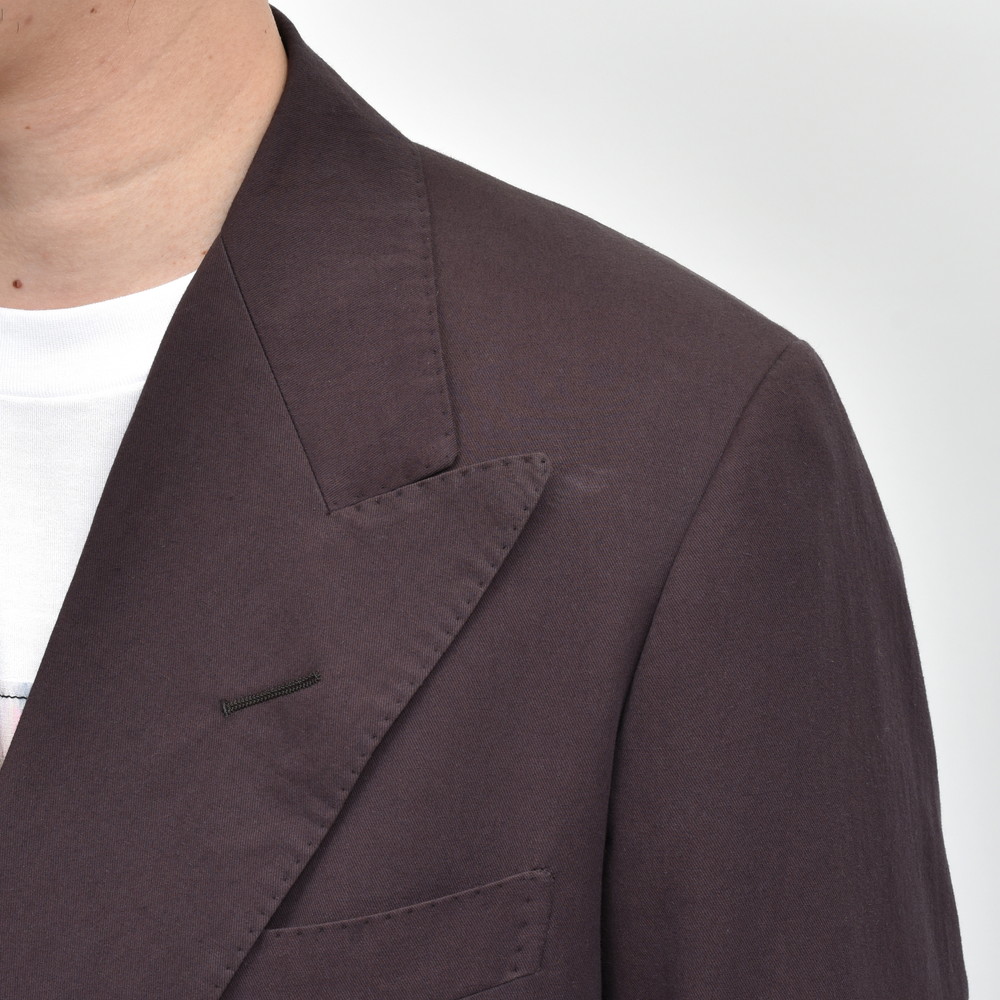 もともと鴨志田氏自身がドレスダウンを愛していることと、ダブルブレストを好んで着用していることから今回の企画がスタートし、こちらのダブルジャケットを含むセットアップが製作されました。