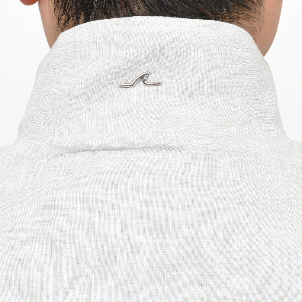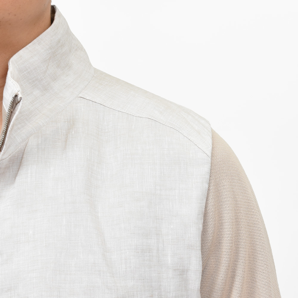 前身頃、襟、ヨーク部分はやわやかでドライなリネンファブリック、スリーブと後身頃はコットンジャージ。