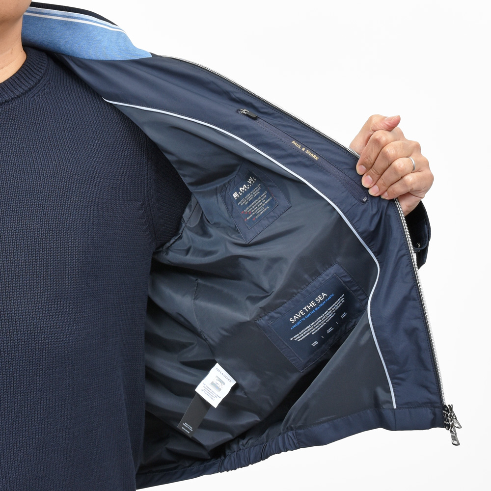 素材はライトウェイトなリサイクルポリエステルで、PAUL & SHARKではお馴染みの再生素材。