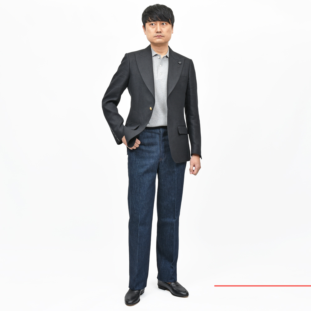ブラックのジャケットはモードな雰囲気とぴったり合うのもポイント、普段のジャケットスタイルに少し食傷気味な方におすすめしたいニュークラシックな一着です。