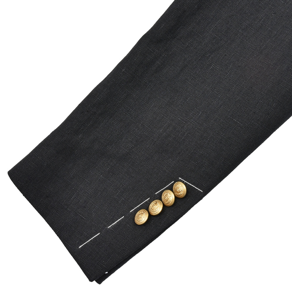 ゴールドのメタルボタンに嫌味はなく、シンプルにブラックの美しさを引き立て、洗練された雰囲気に見せるのに一役買っています。
