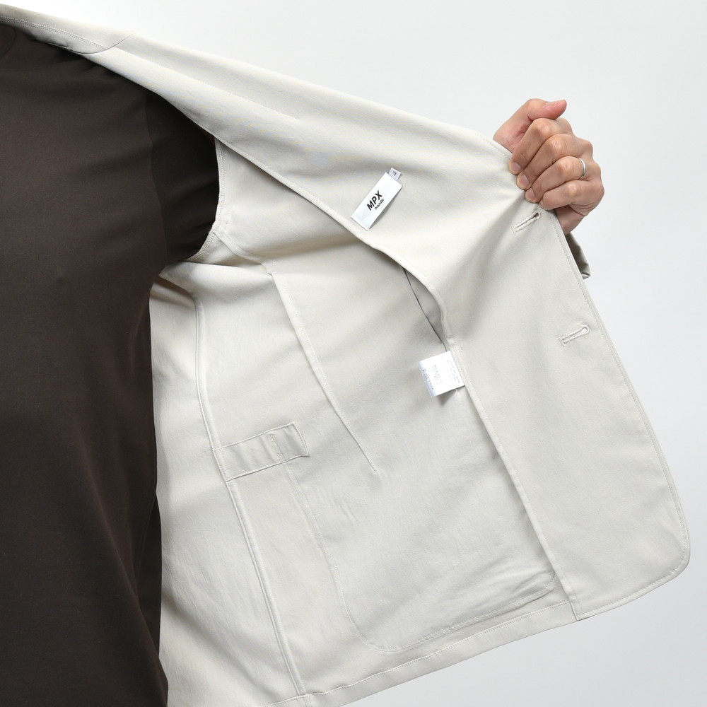 MPX mando GOLF(エムピーエックス マンド ゴルフ)のセットアップ対応ジャケット、ポリエステル100%のテクニカルファブリックですがかなりナチュラル見えする素材感になっており、とても上品でクリーンな仕上がりになっています。