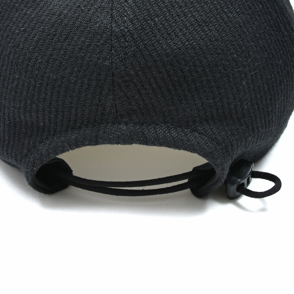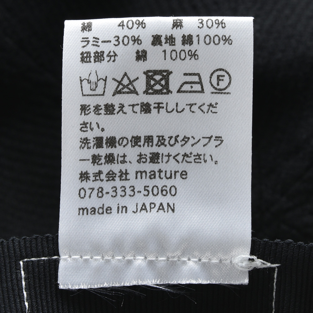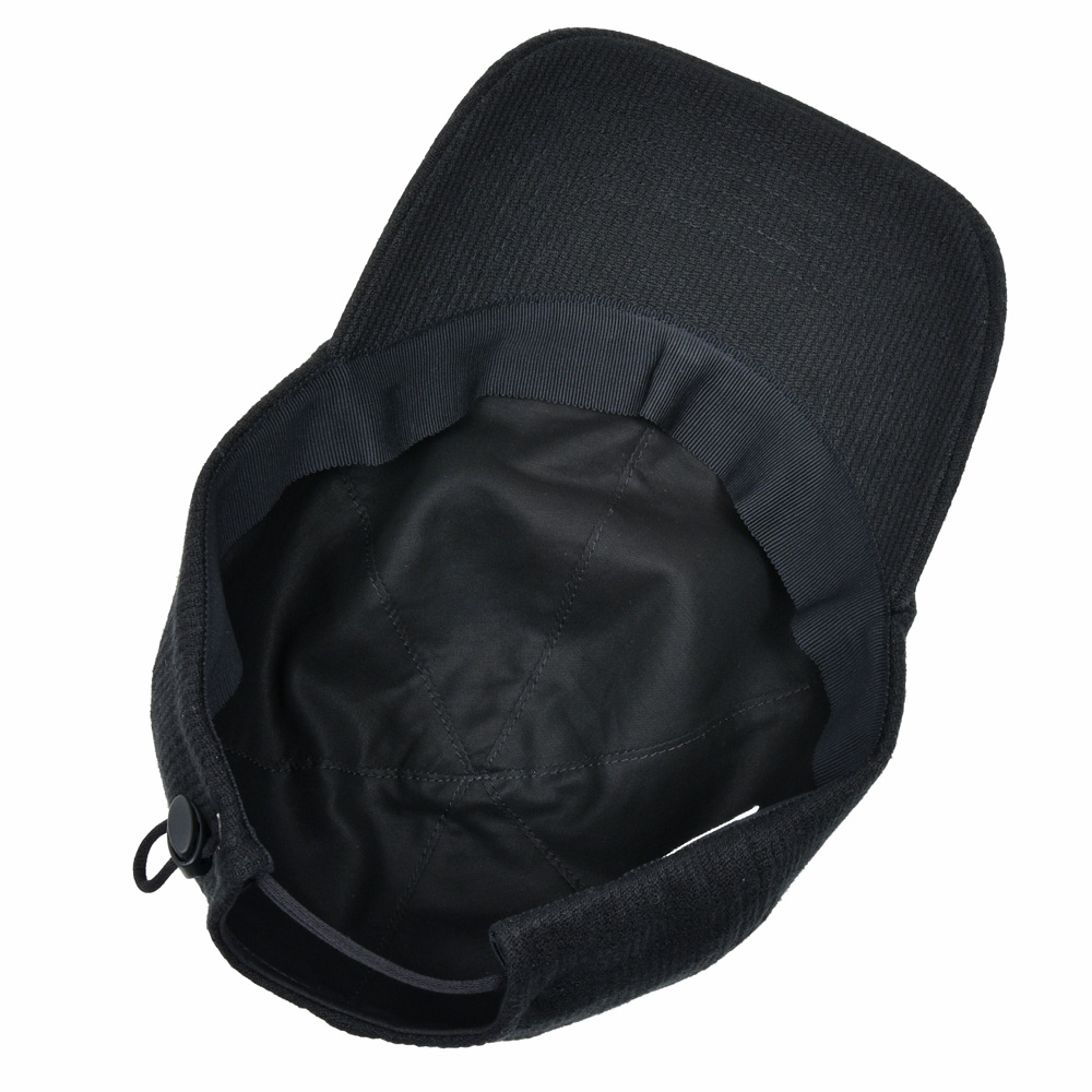 こちらは定番のtrainer capのクラウンをより浅くしたタイプになっていますのでよりフィットさせやすいようにアジャスターはコード型のものを採用しています。素材はコットン、リネン、ラミーを使った3者混のピケを使っていまして、畝の表情がある事でシンプルながらも存在感を発揮。また柔らかなタッチの為、頭にも馴染みやすいものになっています。