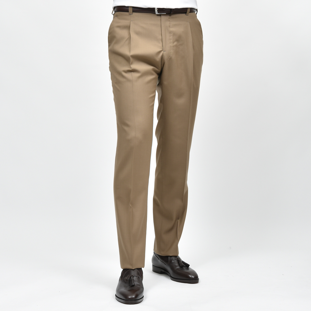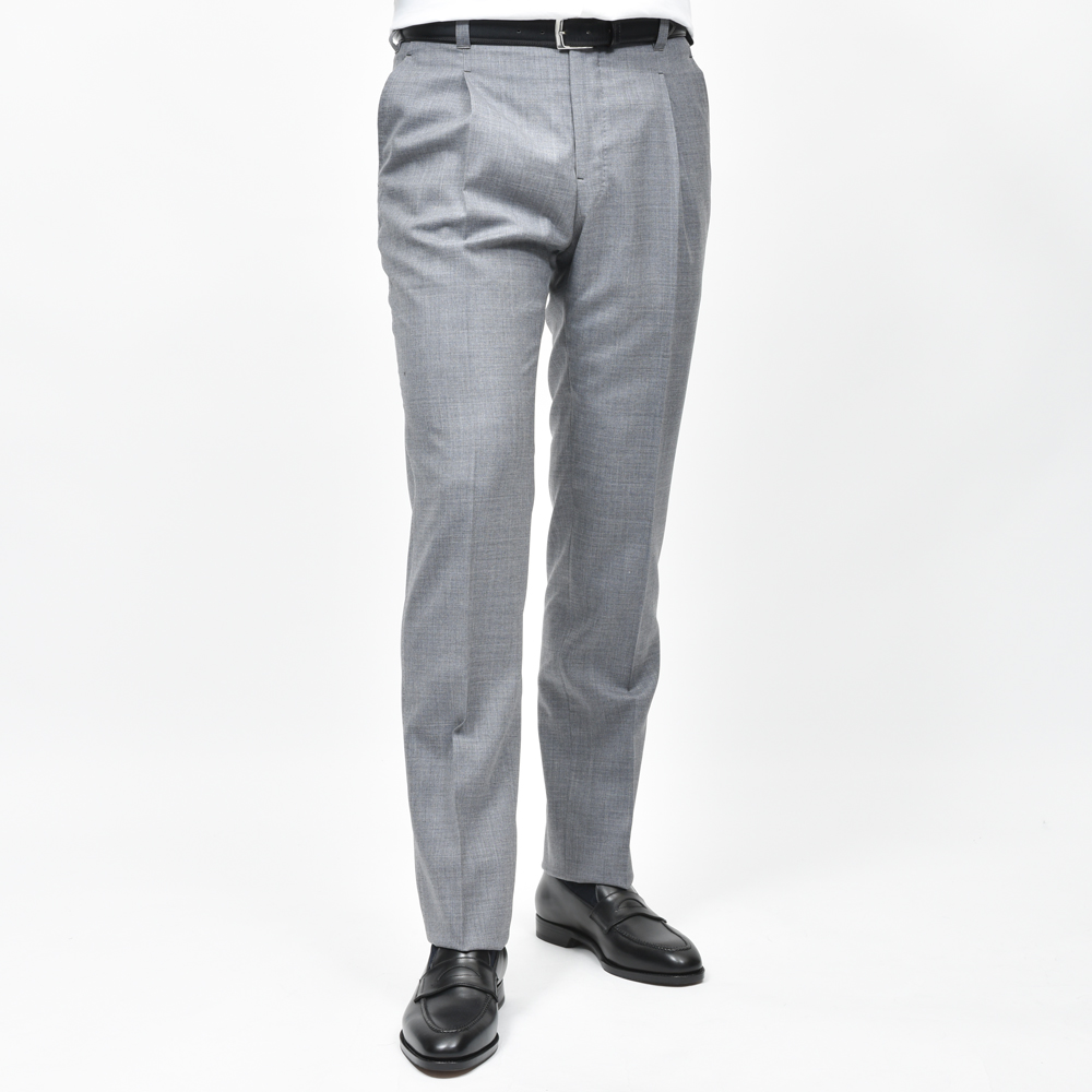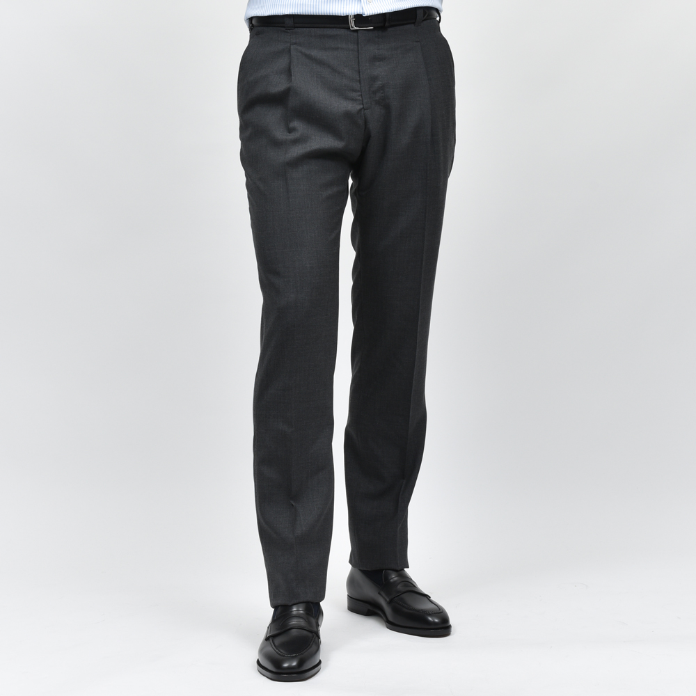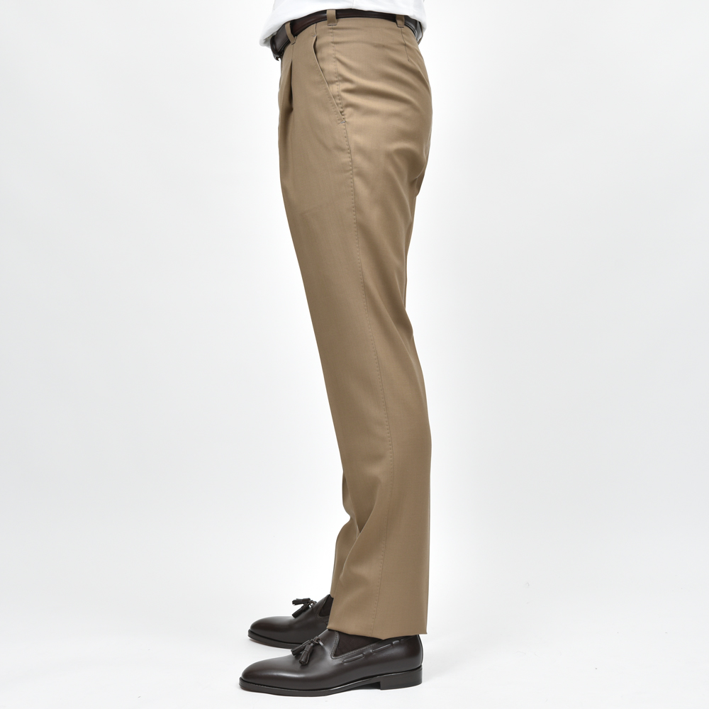 IGARASHI TROUSERS(五十嵐トラウザーズ)の中でも、最もスタンダードでありながら多様なスタイルに調和する万能なモデルが、こちらの1プリーツ仕様・ベルトループ付きのスリムテーパードパンツです。
