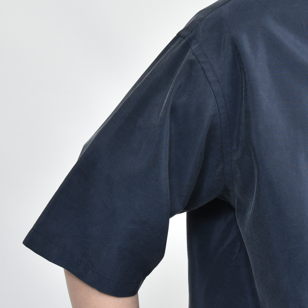 シルクは水を通すと少し白っぽくなるんですが、それを上手く風合い出しのようにコントロールしていて、艶を色っぽく見せないようにデザインされています。