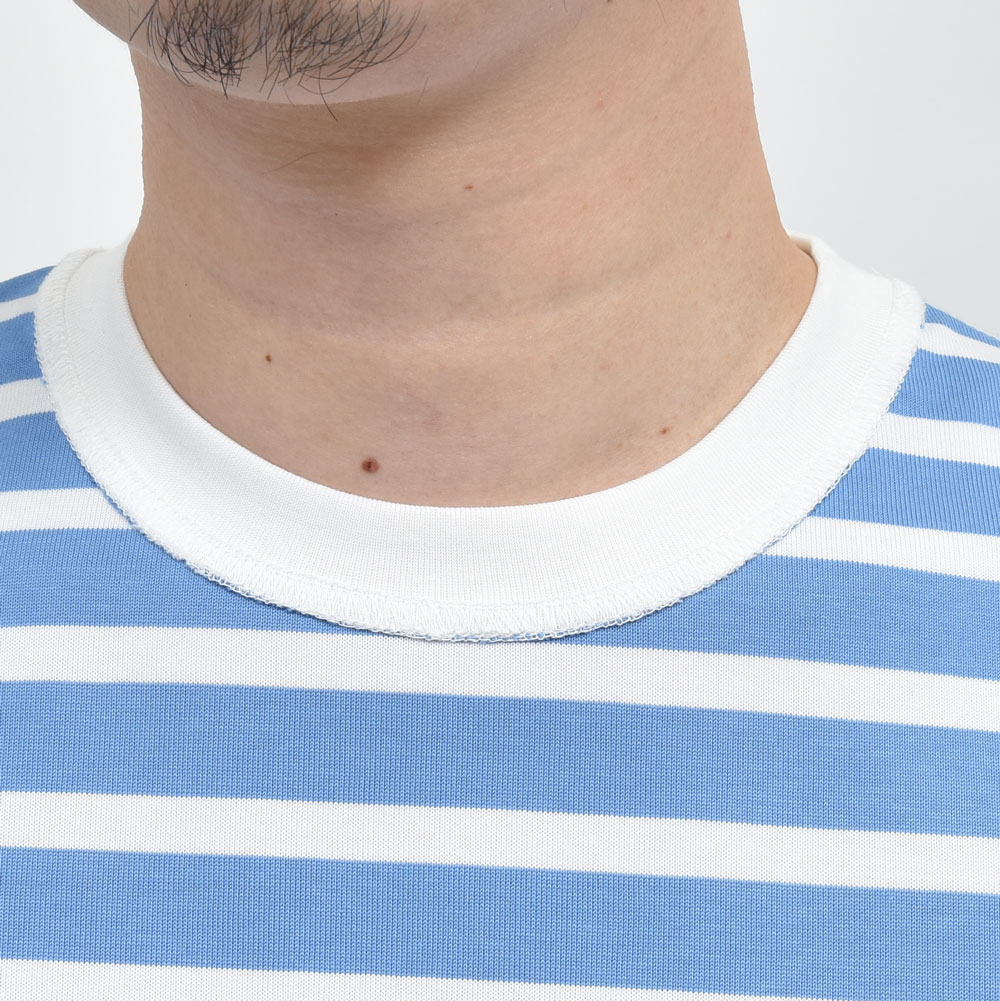ボーダーTシャツと聞いて想像する配色はおそらく一つもないのではないでしょうか。ホワイトを用いているのが1パターンのみでして、それもピュアなホワイトではないので意外とマニアックなアイテムになっていると思います。