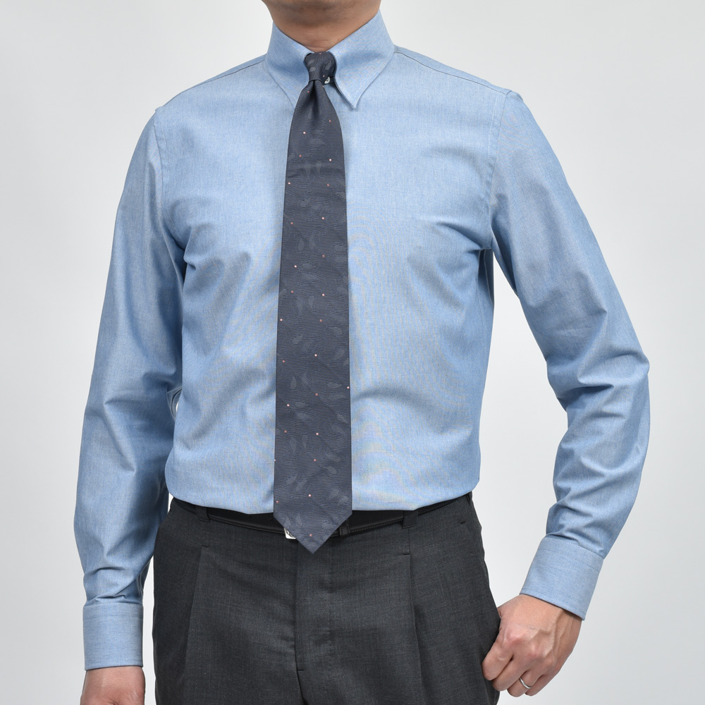 『上品さと風合いを両立したシャンブレータブカラーシャツ』