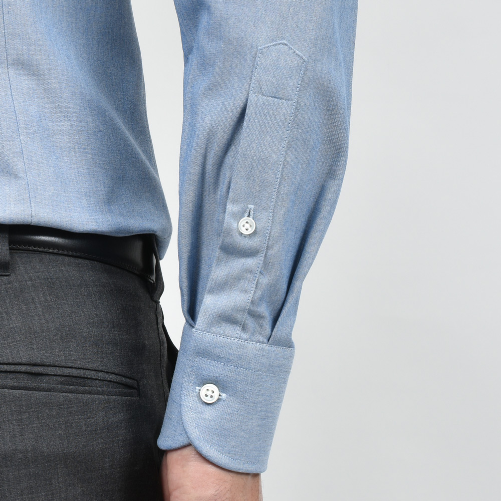 シャンブレーならではの手触りと柔らかさを持ちながらも、ハリ感があり端正な仕上がりに。