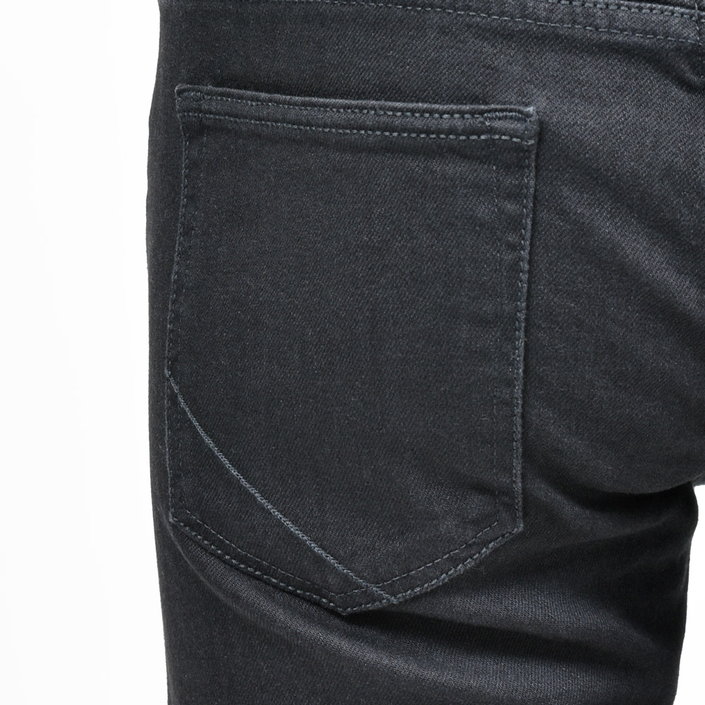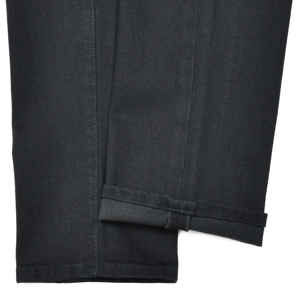 ブラックデニムの中でもより深い色表現を採用しているこちら、濃淡がでにくく白っぽさがでてこないのでシャープで都会的な印象で合わせることが可能なモデルです。