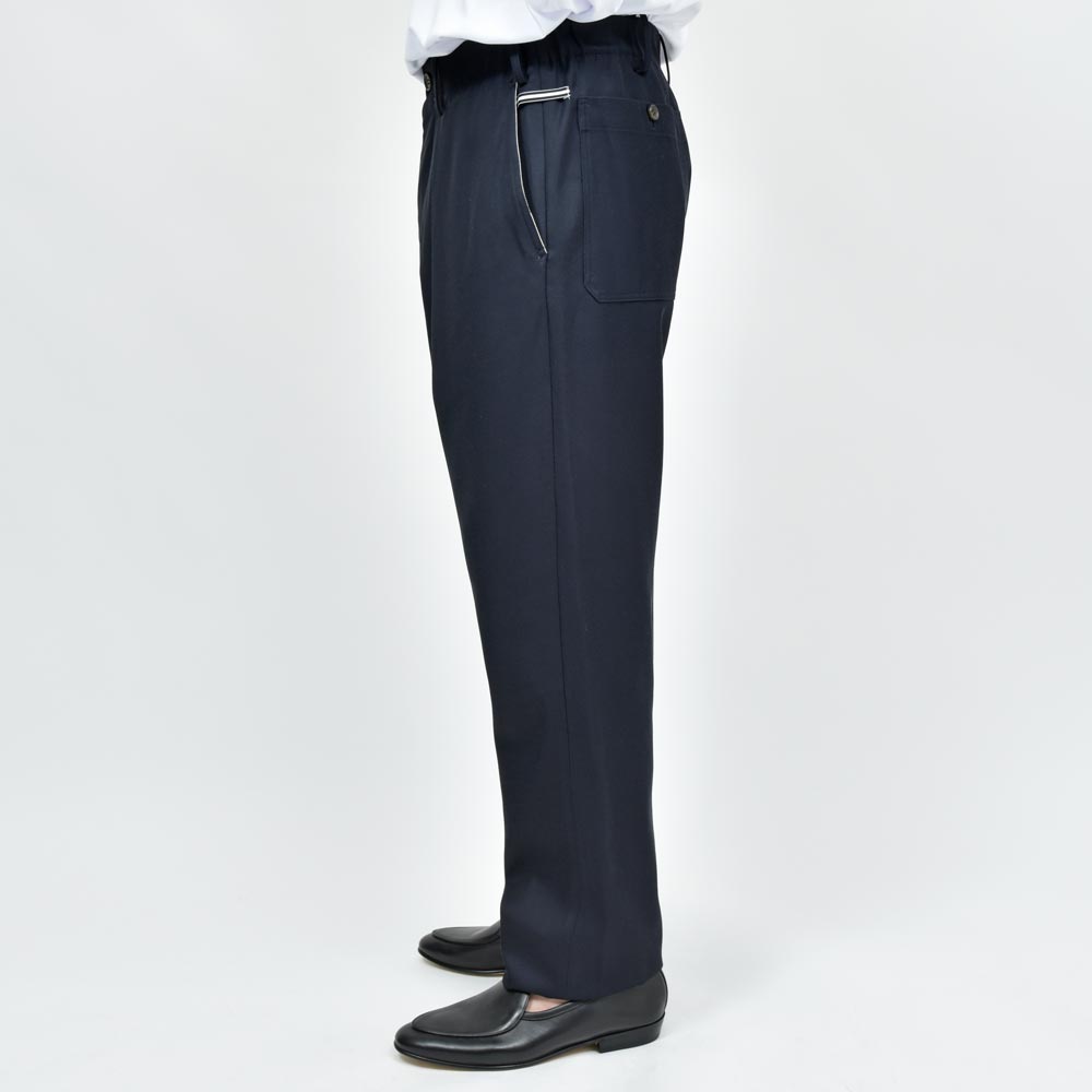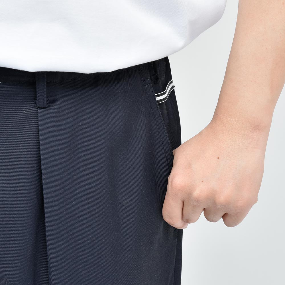 KEY PIECEラインにおける定番のパンツになっていまして、適度な細身のシルエットでありながらもテーパードを効かせすぎないことによって強弱を付けないタイプになっています。