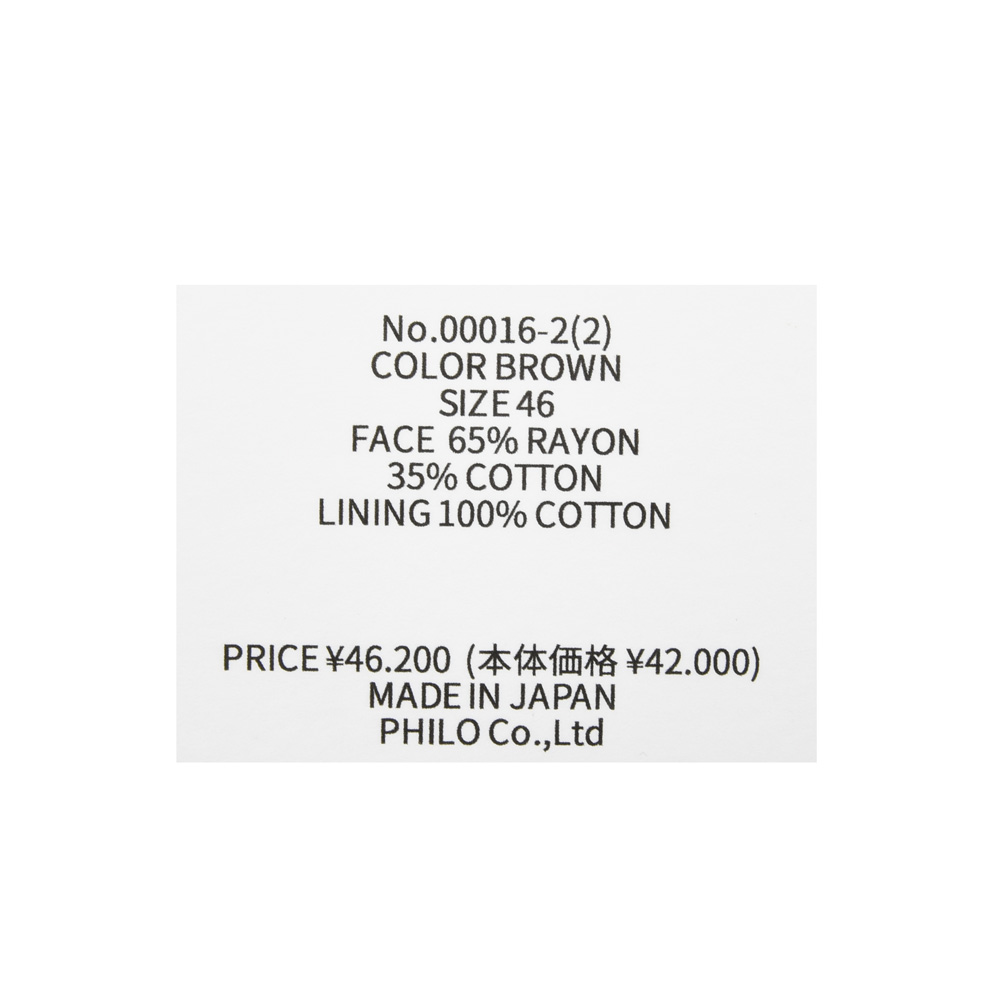 一応0はレディース、46、48はメンズという形でご用意してはいますが、体格や着こなし方によって選ばれるサイズは性別関係なく選んで頂ければと思います。