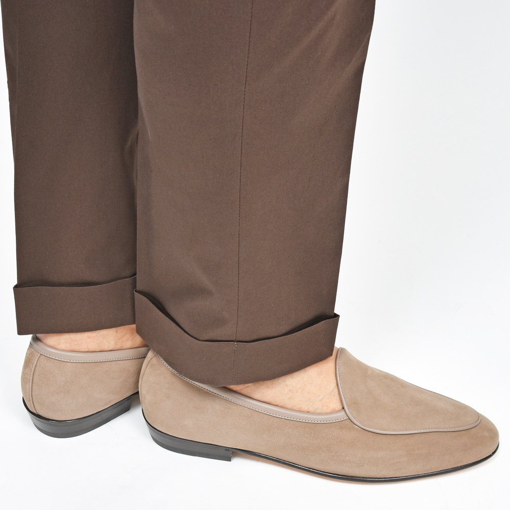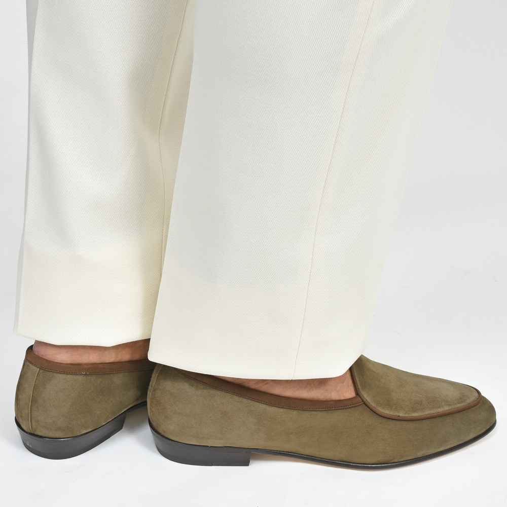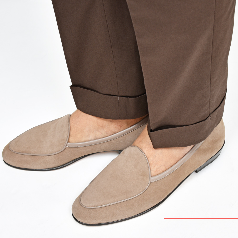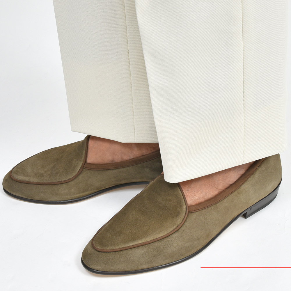 ライニングの補強を必要としない銀付きスエードで、型崩れしにくく、ナチュラルに張りとしなやかさを併せ持つ、まさにベルジャンローファーのために生み出されたスペシャルレザーです。