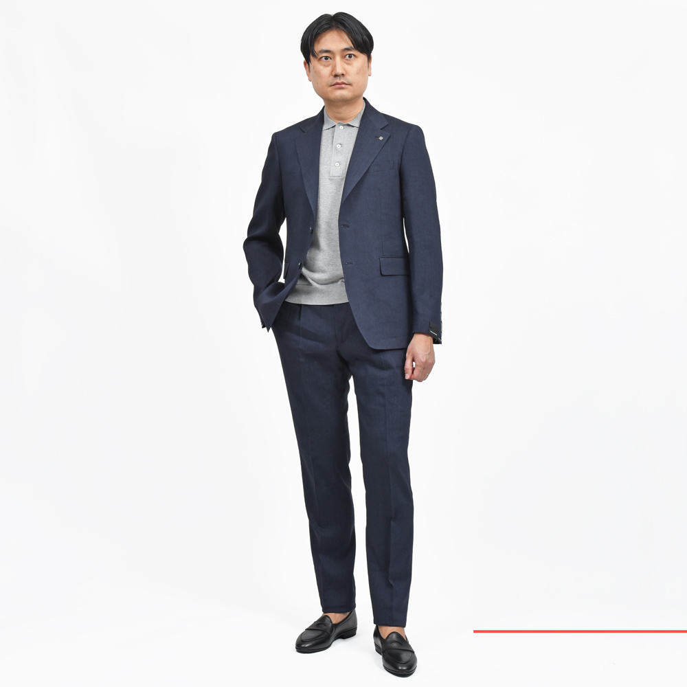 この仕立てで生地も重ければかなり限定的なアイテムになってしまうので、リアルに着られるイタリアらしい塩梅としてのチョイスになります。