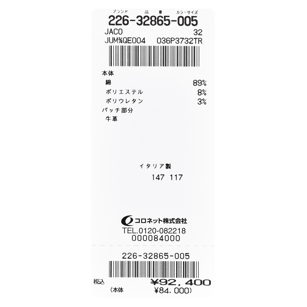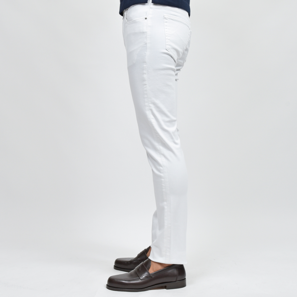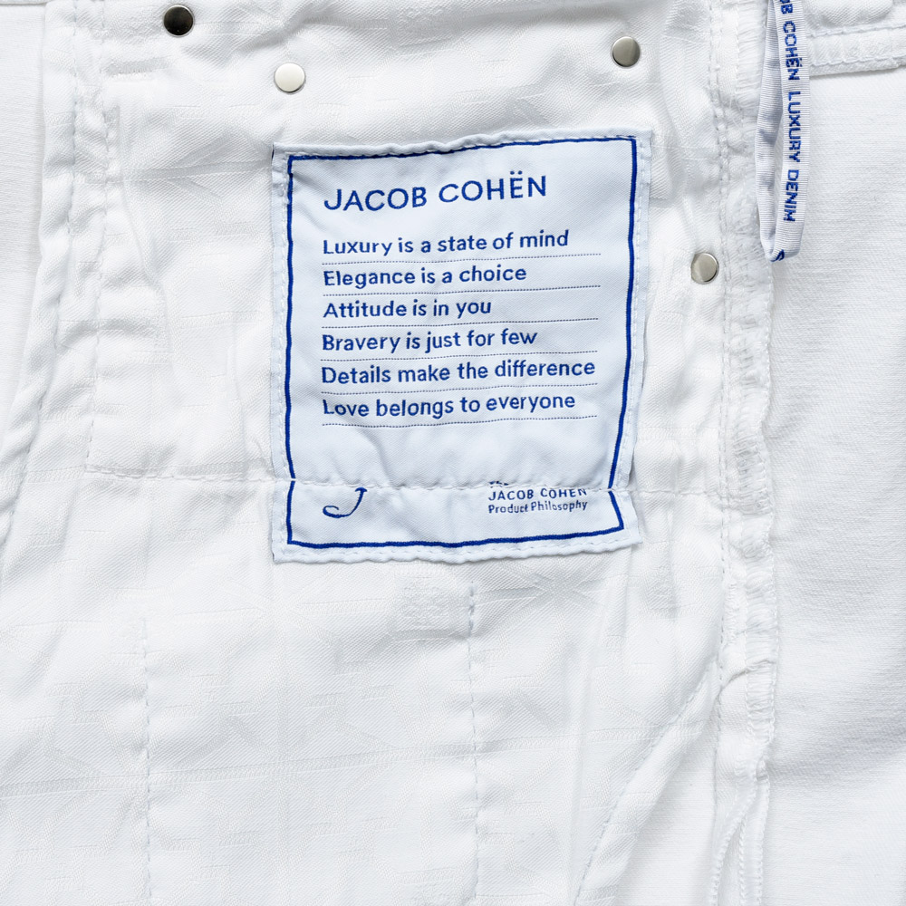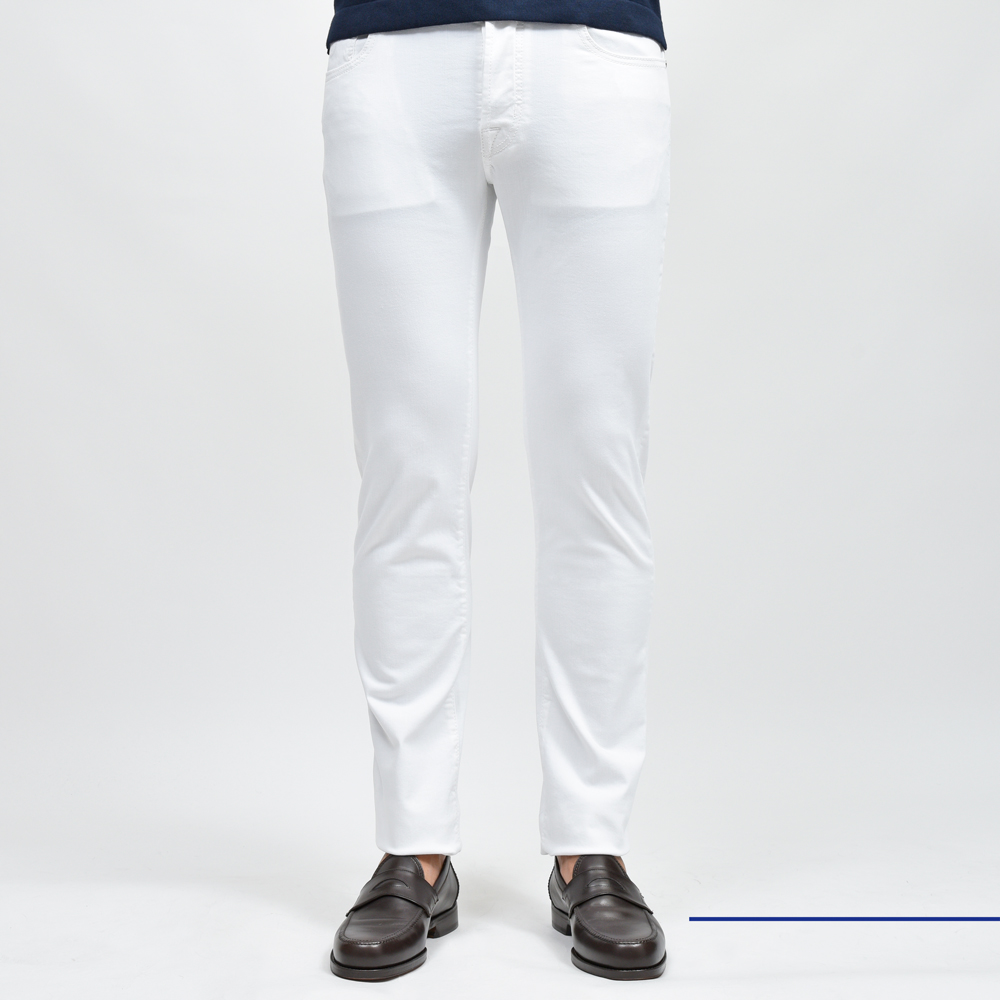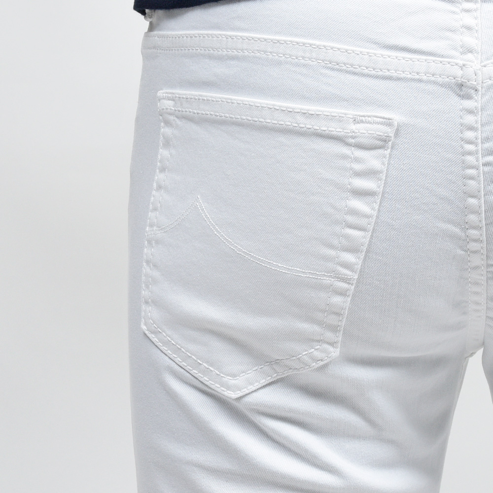 純白!!という感じのピュアなホワイトになっていまして、イタリアらしいスマートで程よく色っぽさを思わせるような一本は、さすがJACOB COHENといったところ。